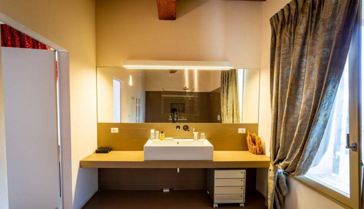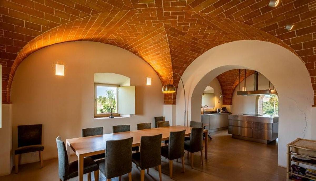 The villa is insulated with state-of-the-art materials, featuring 1-meter-thick walls. The underfloor heating system is managed through a smart home system with a heat pump, complemented by a 19.5 kW photovoltaic system. Windows are shatterproof, and flooring alternates between modern resins and traditional materials like reclaimed terracotta.