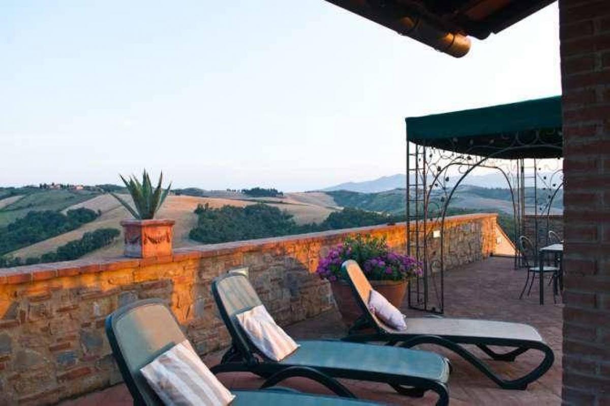 This beautifully renovated villa is for sale, set amidst landscaped gardens with a large swimming pool. Located near Volterra, the property offers a 360° panoramic view of the Tuscan countryside and is surrounded by 148 hectares of land, including a hunting reserve.