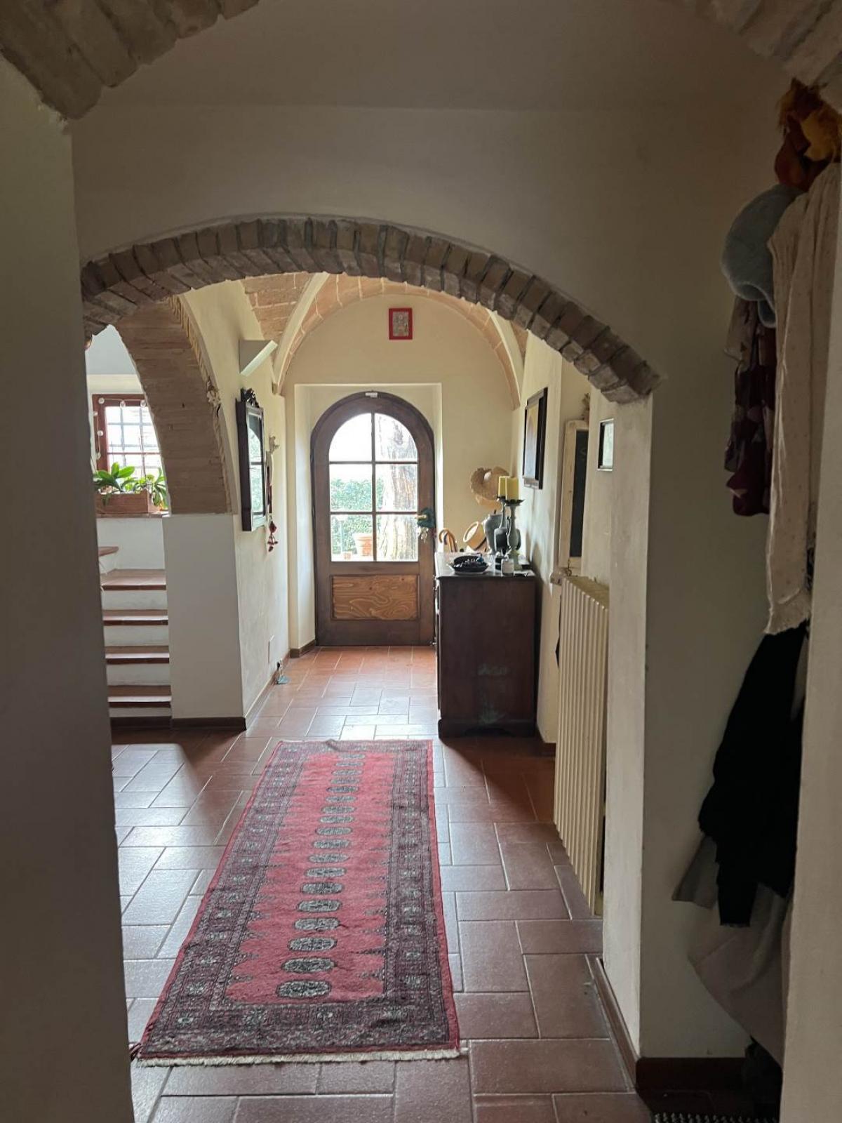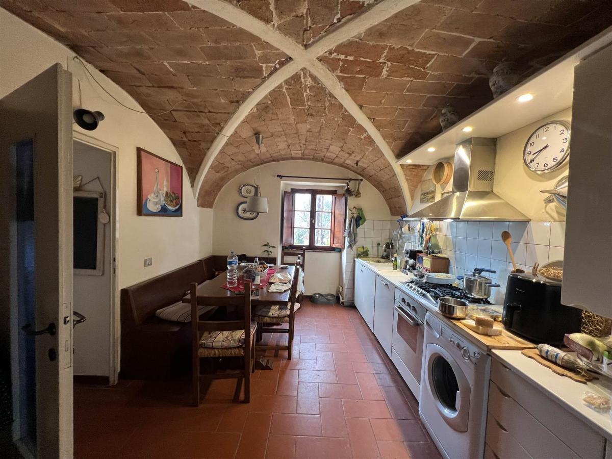 Located in the heart of Tuscany, between Volterra and Pisa, this splendid stone farmhouse is spread over two levels and offers spacious interiors. The ground floor features a bright living room with a large fireplace, a rustic kitchen with terracotta flooring, a dining room, a study, and a service bathroom. The first floor is dedicated to the master bedroom area, with two double bedrooms, a main bathroom with a bathtub, a study, and a small additional bathroom.