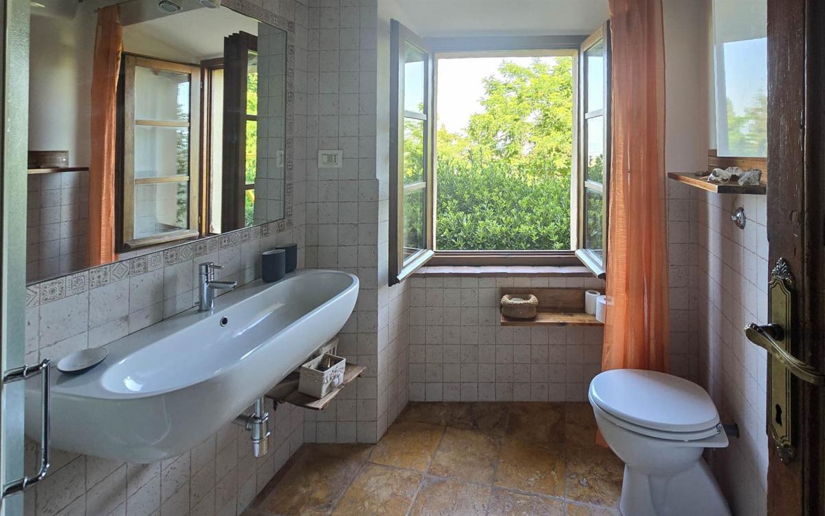 Set in a charming hamlet among the Pisa hills, this 220 sqm terraced house includes two adjacent units, one currently operating as a B&B. The guesthouse portion features three double bedrooms, each with independent access and private bathroom with hydromassage tub, enhanced by vaulted ceilings and traditional Tuscan finishes. On the ground floor, a spacious 40 sqm room with cross vaults and a 21 sqm kitchen opening to the outside complete the level. The upper floor includes two additional rooms totaling 64 sqm connected via an internal staircase. All rooms feature a modern thermal convection climate system. The adjacent independent apartment of approx. 95 sqm includes a living room with fireplace, kitchen, two bedrooms, a study, a bathroom and a charming underground granary used as a service room.