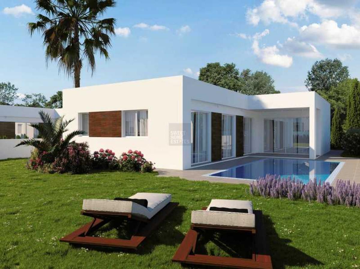 Brand-new high-quality construction bungalow in a separate residential plot. Situated in a rural area on the edge of the town of Xylofagou.The total cover area is 170 sq. meters that includes the internal area, covered garage and the covered veranda. The magnificent plot size is 522 square meters!