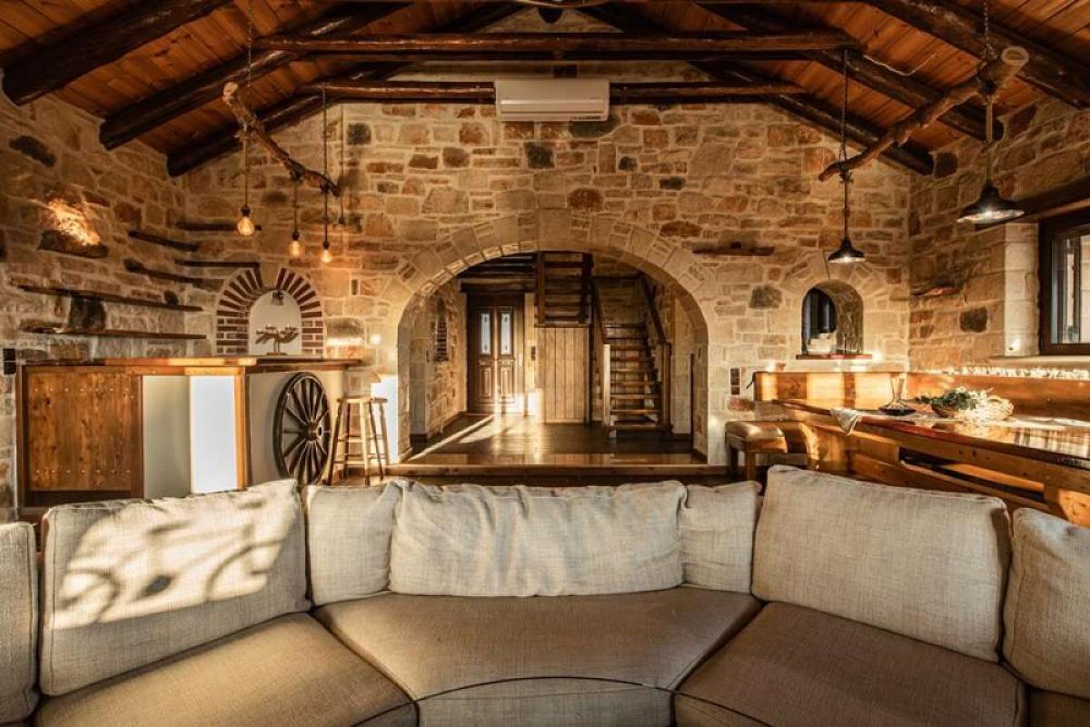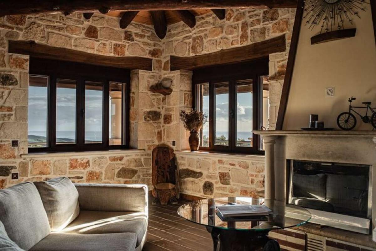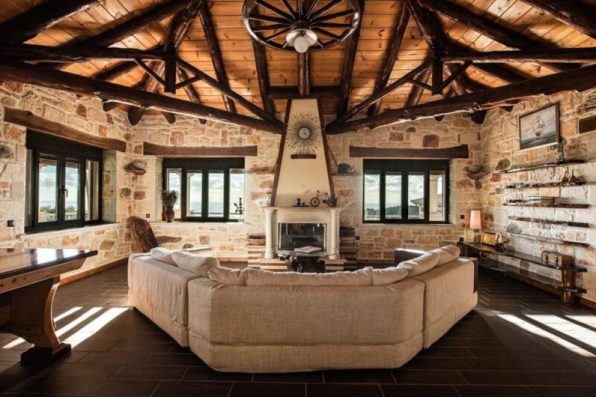 Luxury stone villa in mountainous Zakynthos with a total area of 155sqm with a swimming pool and sea view with wonderful sunsets for sale. The plot where the villa is built is located in a very privileged and quiet location, with a great view, natural beauty and plenty of space and has an area of 2.200 sqm, beautifully landscaped with tiles, garden, flower beds and trees. The villa is sold fully furnished and consists of two floors and includes 3 bedrooms, 2 bathrooms, a fully equipped kitchen, a living room with a fireplace, a dining room and large terraces of 60 square meters overlooking the sea. The luxury villa on the island of Zakynthos also has a large swimming pool, parking, storage room, engine room, water tank, BBQ - oven, large verandas, satellite dish, air conditioning, alarm, electrical appliances, disabled access. Distances: 3 km from the sea, 22 km from the city, 19 km from the airport.Price: €1.300.000