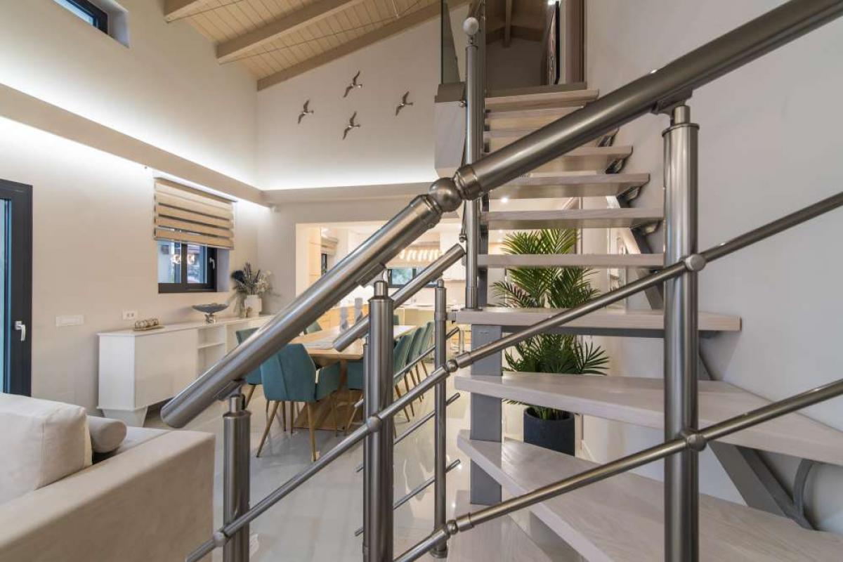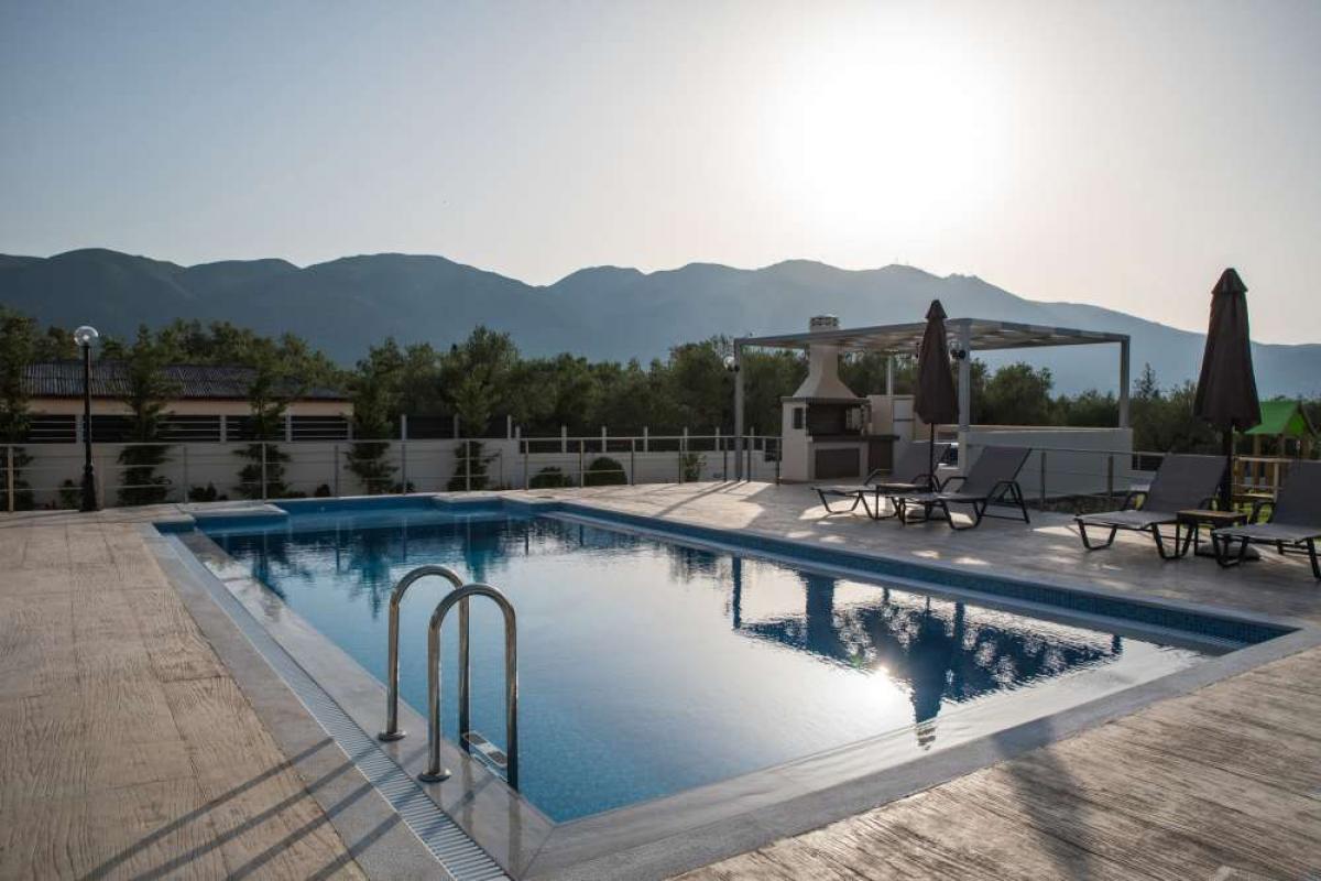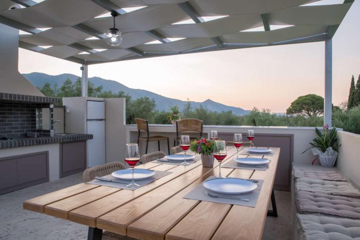 Zakynthos. Luxurious, fully equipped, newly built villa 270sqm with pool, 4 km from the sea, for sale. The villa consists of 2 separate houses that each includes 4 bedrooms, 4 bathrooms, kitchen, living room and terraces overlooking the garden and the sea. It has a wonderful view of the mountains, is fully furnished and has a total of 8 bedrooms, 8 bathrooms, 2 kitchens, 2 living rooms. It also has security doors, solar water heaters for hot water, fireplace, air conditioning, swimming pool, parking, garden 1.500sqm, grass, barbecue, garage, autonomous heating, alarm, storage. Distances: 4km from the sea and 10km from the airport and 9km from Zakynthos town.Price: €1.500.000