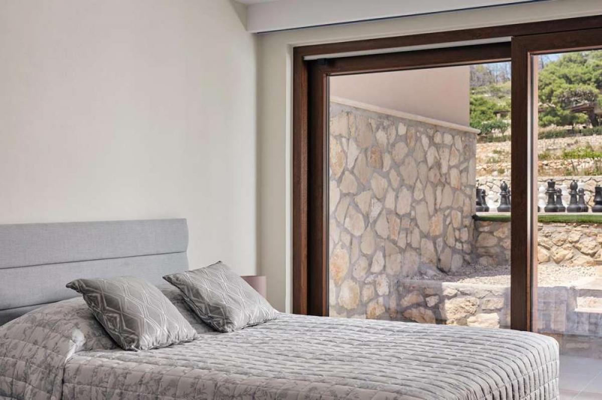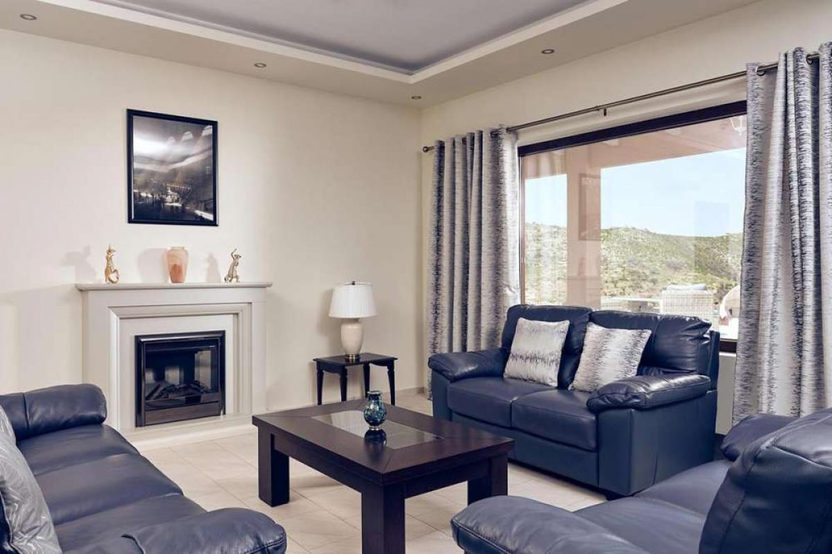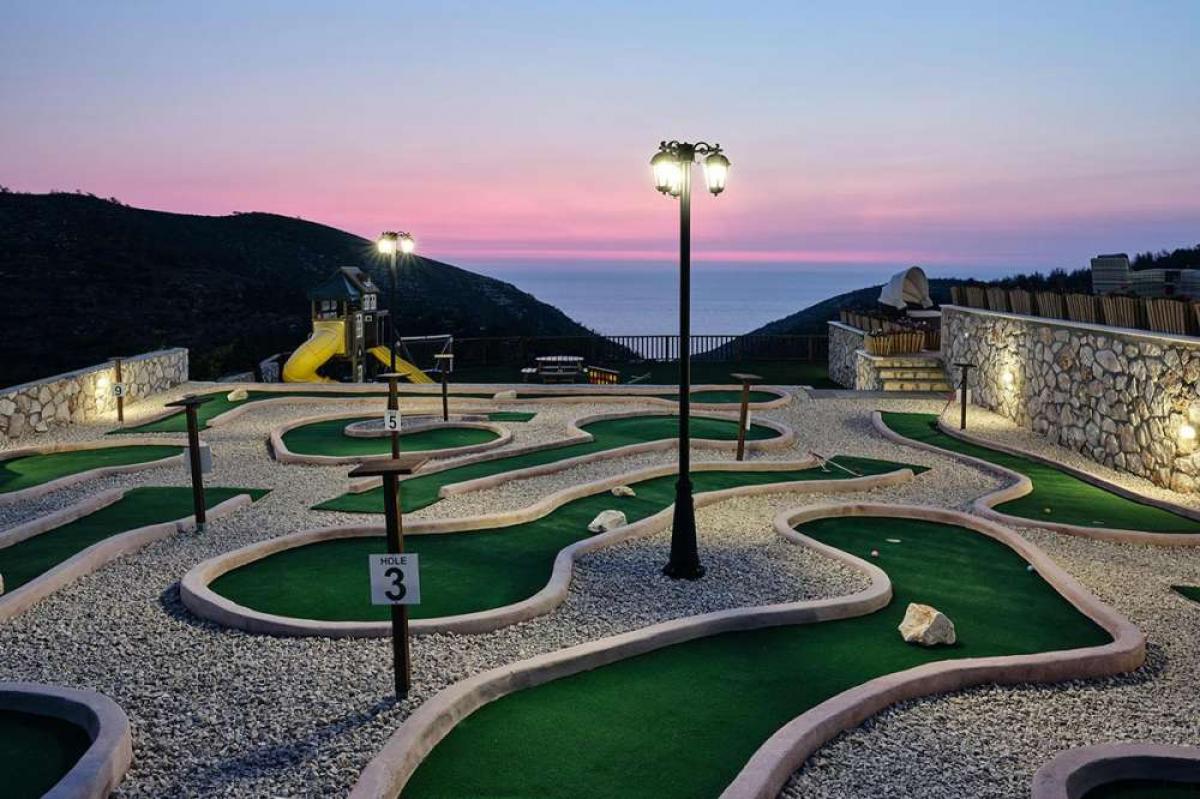 Luxurious, newly built, modern three-storey villa of 430 sq.m., in Zakynthos, on a plot of 9.500 sq.m., with a unique sea view, for sale. The villa is of exceptional luxury, unique view of the surrounding area and unparalleled beauty and can accommodate up to 11 people. Built with comfort, luxury and privacy in mind at every point, the villa is located in a gated area, a prime location with plenty of space, unobstructed sea and mountain views and a private entrance with parking spaces. The villa consists of three levels, the first floor consists of a very comfortable space where the living room and the fully equipped kitchen are located. Also on the same floor there is a small bathroom and a room with a double bed and its own bathroom. From the living room there is access to the terrace with an unobstructed view of the Ionian sea as well as to the swimming pool which is heated and to the fully equipped barbecue and the outside bar. On the second floor there are 3 bedrooms with their own bathroom and a private balcony each with an unobstructed view of the sea. An internal staircase from the living room leads to the semi-basement which has a spacious bedroom with its own bathroom, a double bed and a single and a view of the surrounding area and the large chess which is in the garden. On this level there is also a recreation area with billiards, a home cinema, a laundry room with a washing machine, a dryer and a storage room. It also has air conditioning in all rooms, autonomous heating with oil burner, solar and energy fireplace. It also has an Olympic standard tennis court and a golf course.Distances: Near Navagio beach, 10 km from the port of Agios Nikolaos and 30 km from the center of Zakynthos.