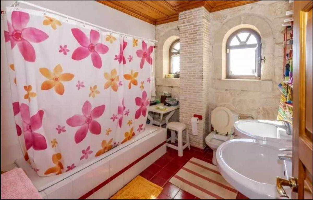 The plot is 6.700 sqm with 77 olive trees and other fruit trees, the garden is paved and fenced with stone wall and it has two entrances with electric gates.