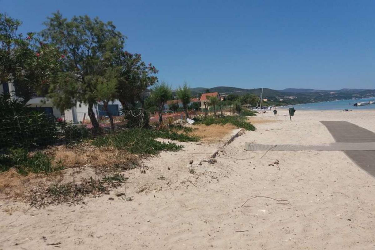 Zakynthos. FOR SALE. Seaside plot of 5.500 sqm, adjoining 50 meters on a sandy beach. The plot is within the village settlement, flat and it has engraved seashore, suitable for tourist development. It builds 2.400 sqm hotel. Distances: 100 meters from the shops, 15 km from the city and 12 km from the airport.Price: €3.500.000