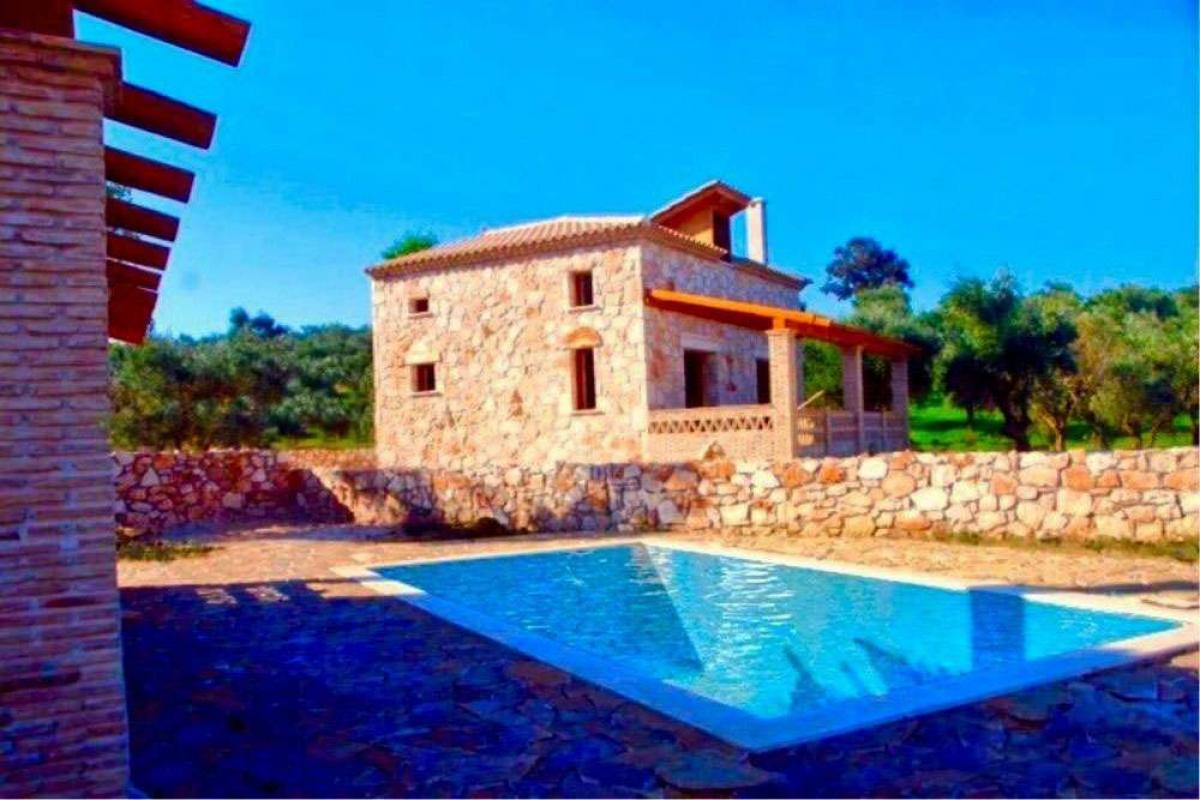 Zakynthos. FOR SALE: Complex of 10 fully furnished villas, consisting of six furnished stone villas with shared pool and 4 detached houses with private pools. The villas are new stone by hand - traditional modern building construction. It consists of six independent two-storey houses, a total area of 720sqm and covered terraces overlooking the sea and 4 villas total area of 400sqm, located in 6.000sq.m land. Each house comprises the ground floor a fully equipped kitchen and dining area for 6 people, living room and WC, and a wooden staircase leads to the first floor where there are two bedrooms, hall and bathroom.In each level there are roofed and open terraces, fully protected, with lighting and country furnishing, on the two sides of the building, the NE and SW, with separate entrances and staircases for each house.