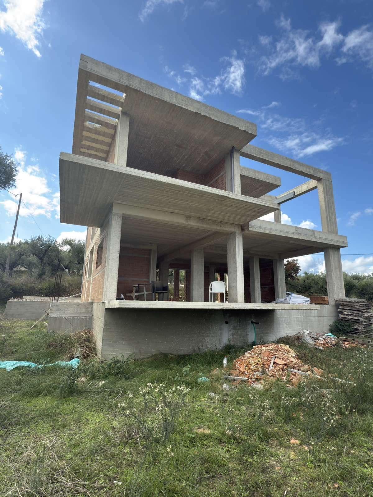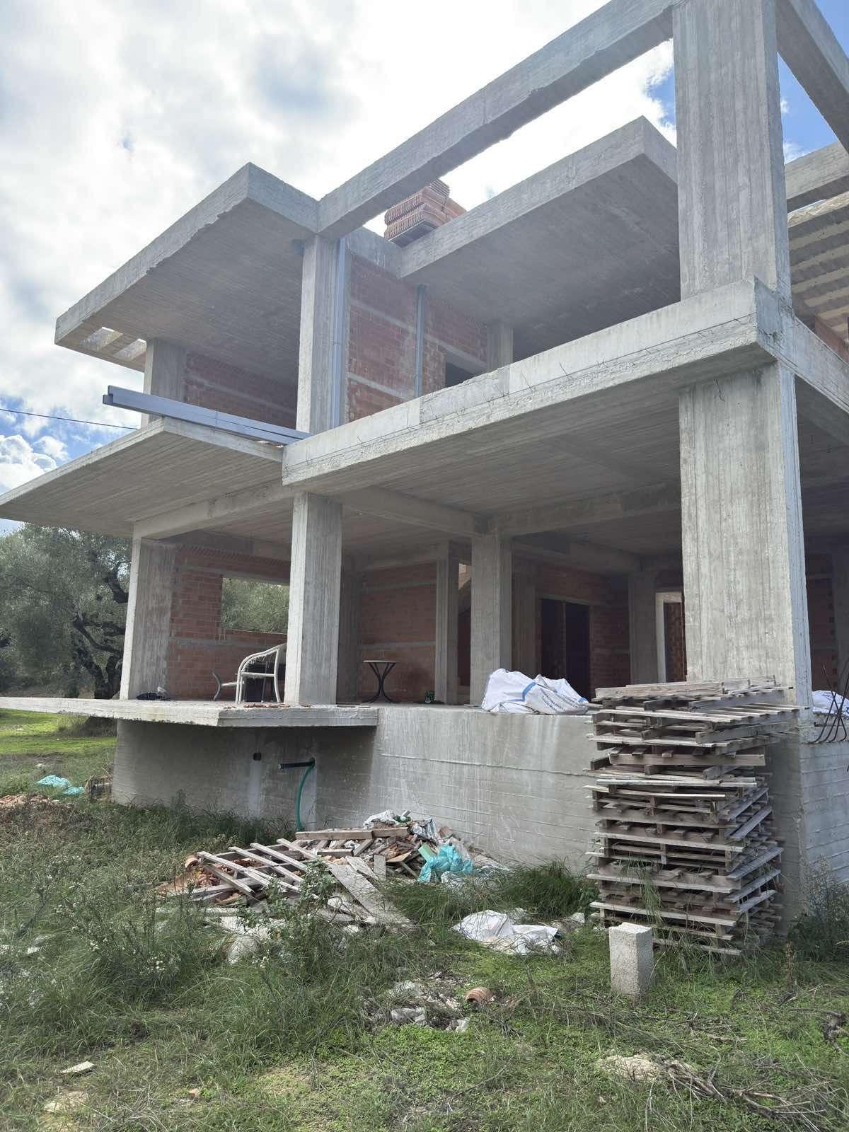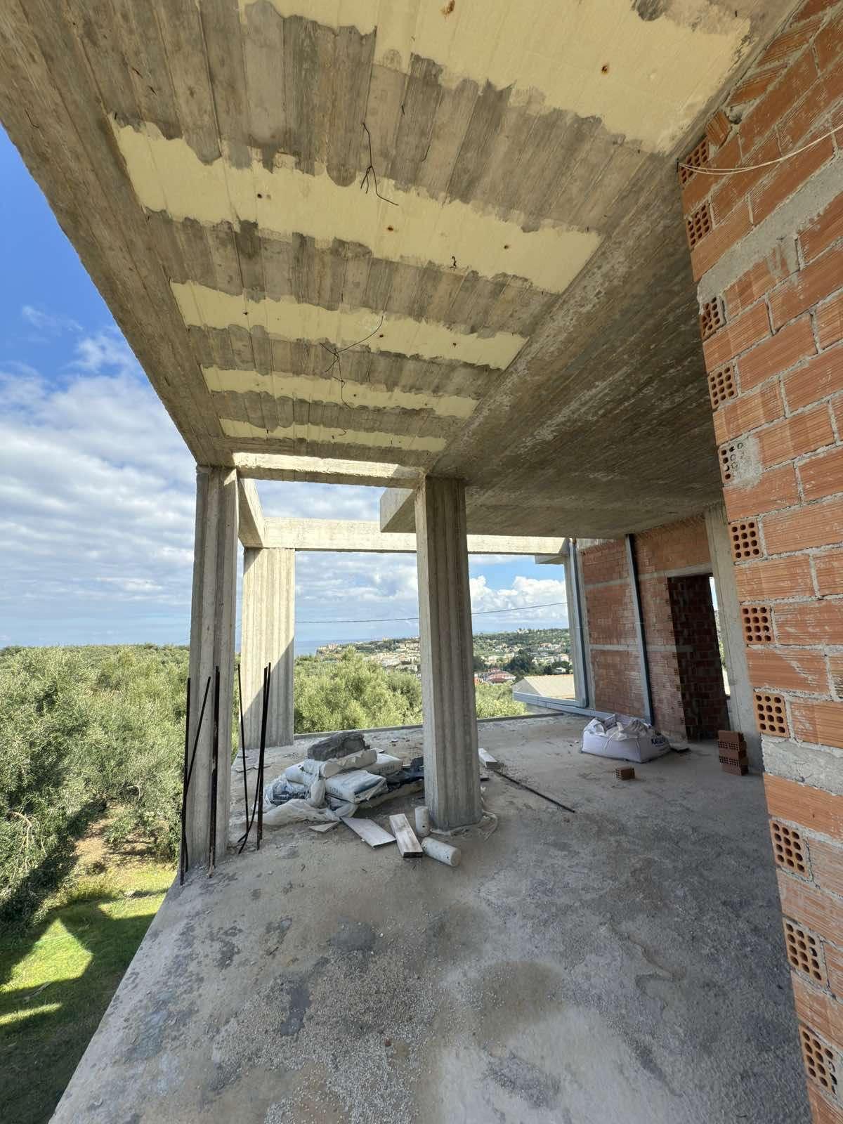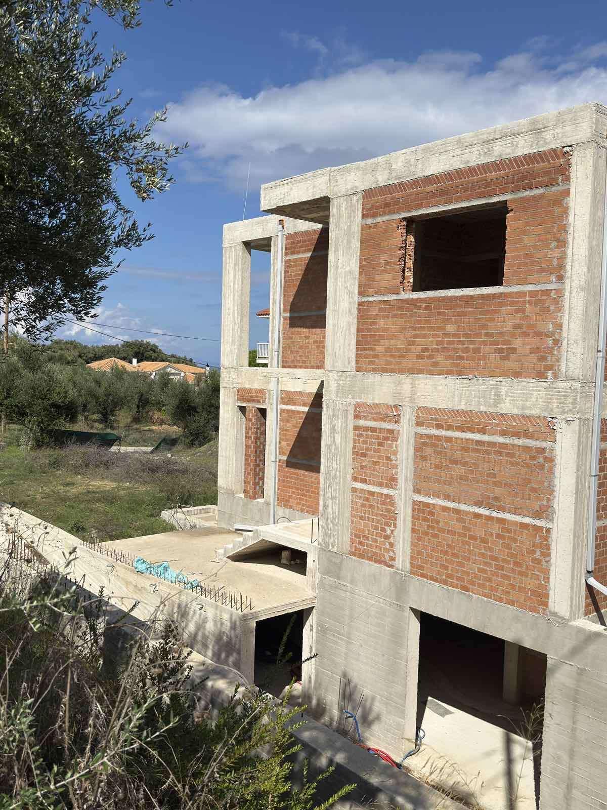 Unfinished villa with an area of 275 sq m, in a tourist area of Zakynthos with panoramic sea views, for sale. The villa is in the masonry stage and has been built on a plot of 1.000 sq m within the settlement, on a hill. The building is three levels and consists of a semi-basement of 110 sq m which includes an apartment with two bedrooms, kitchen, living room, bathroom and storage room as well as an internal staircase that connects to the maisonette of the 1st and 2nd floors, which is a separate residence and has an area of 165 sq m, with a large living room, kitchen and 1 bathroom on the 1st floor and 3 bedrooms, 2 bathrooms and large verandas on the 2nd floor.Price: €600.000