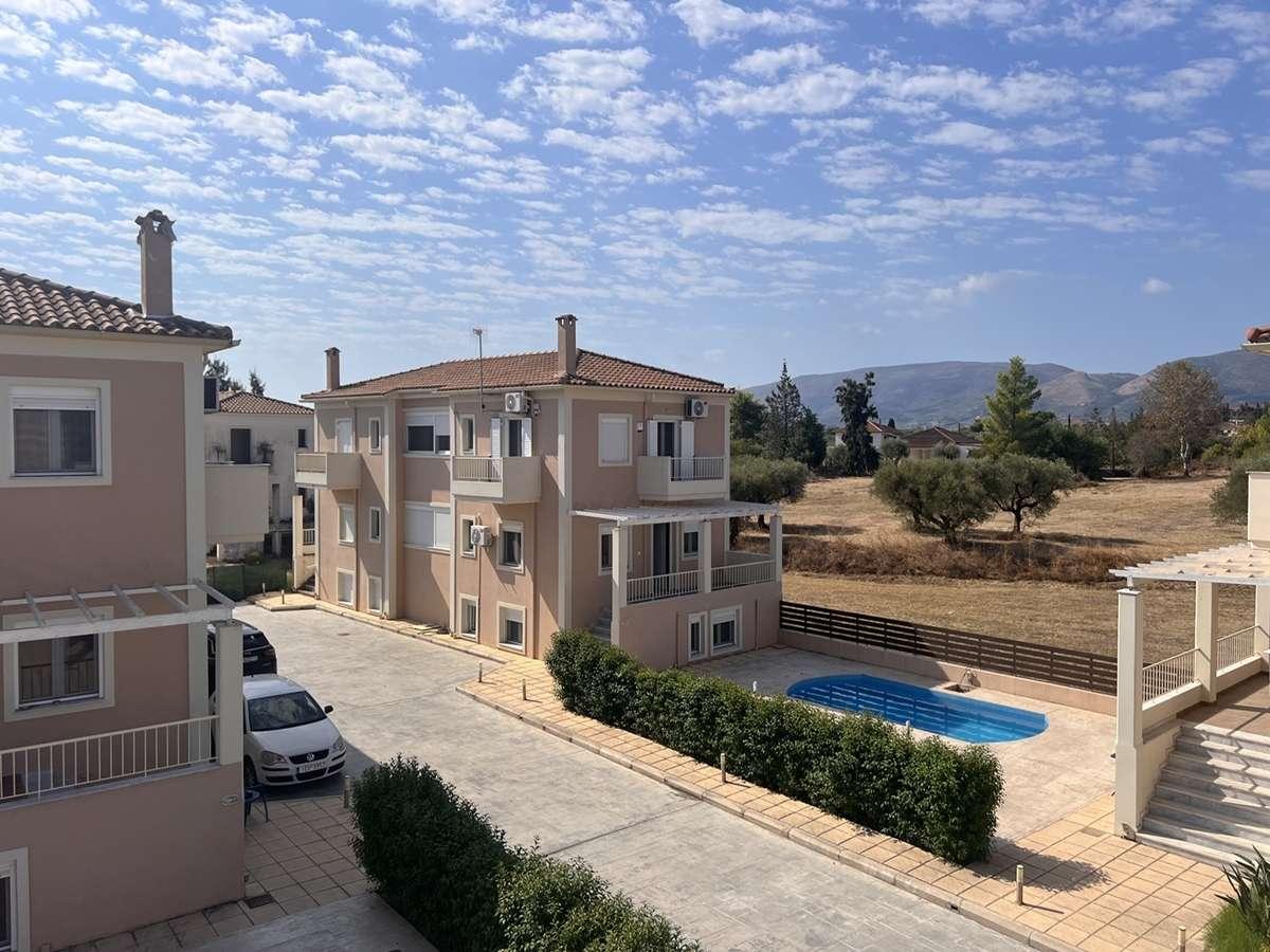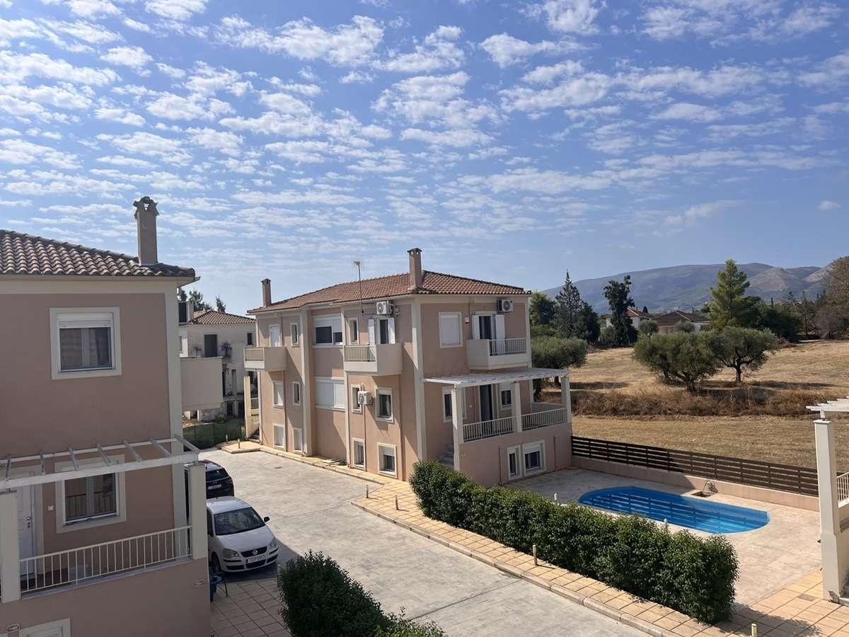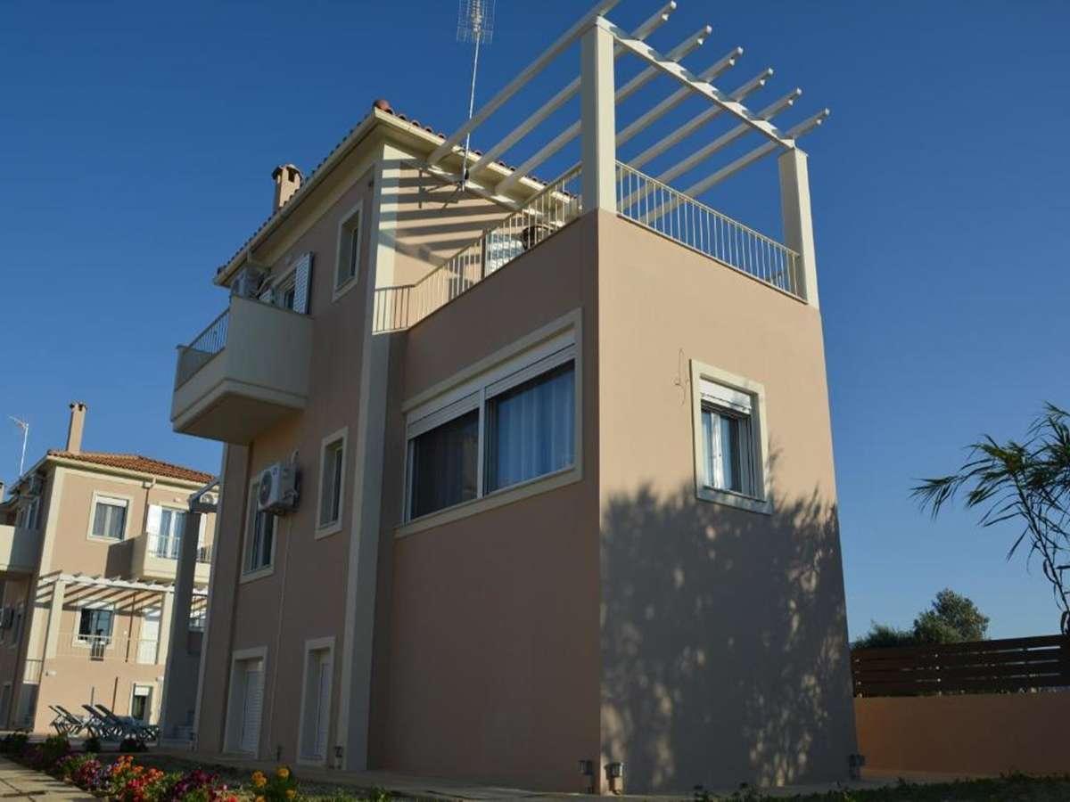 Detached house fully furnished, in Zakynthos in an area of 128sqms, with swimming pool, for sale. The detached house is located in a plot of 9.150sqms where a complex of 21 houses has been built and consists of 3 bedrooms, 2 bathrooms and living-room with kitchen, ware house and big verandas with view. It has air conditions to all the rooms and waiting for radiators. Distances: 7km from the city and the airport, 5km from the sea.Price: €230.000