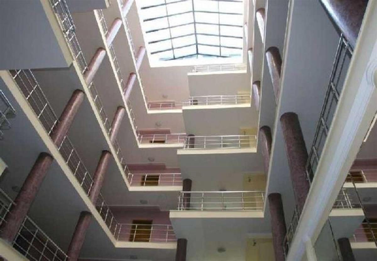 The ground floor has a bank, restaurant and several shops and in the centre of the building is a glass dome roof creating lots of natural light in the lobby area.
