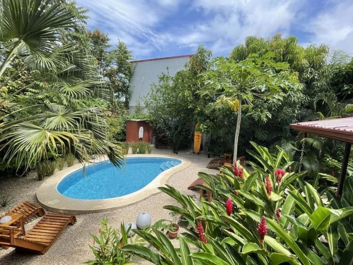 This property is nestled in Canto de Gavilanes, a neighborhood that?s being more and more prized these last few years. It was built in 2004 and remodeled by the new owners in 2017. Just a 10-minute walk from the beach of Playa Samara, this small boutique hotel is set in a beautiful tropical garden, equipped with an inviting pool with a feel good and soothing atmosphere. The location could not be greater as it is: and about 400 m away from the town amenities are easily accessible by foot or by bike, you don?t really need a car so you are helping with saving the environment. The lodge has 1 standard room (about 20 square meters) and 4 superior rooms (about 30 square meters) all equipped with AC, an office space that could easily be converted in a room. The owners live in a 2 very good size rooms space on the upper floor. All of them are furnished with attention to detail and combine the modern construction with rustic furniture and handcrafted accessories in order to keep the natural feel. The rooms do not have a kitchen but there?s one which the owners use for themselves located in a very nice little restaurant by the pool. Upon their discretion they let the guests use it from time to time. Facing the pool there?s a good size room which the owners use as an office, it could be easily transformed to a bedroom. One thing that?s very original with the lodge is the little library corner. It?s located in the outdoor area and one can sit and read while sipping your favorite drink. Another original idea: the lodge have a big cittern hanging overhead near the entrance, since there is a big space underneath it, the owners converted the latter into a rather cool smoking area with a sofa. The outdoor area is just splendid! The surrounding well maintained and colorful garden is the main attraction. There are fruit plants, flowers and other tropical plants all over, well arranged. You have the feeling that this is being orchestrated by a grand maestro. The pool is big part of the whole attraction also. An open air little restaurant with nice handcrafted sitting tables, bar and chairs that?s adjacent to the said pool completes the scenery. This lodge offers plenty of opportunities as it can be used as a big or multi- family place, rental income property, retreat or all of this in alternated. It?s been offering rentals on different websites since 2018 and have been a very good source of revenues for the owners.