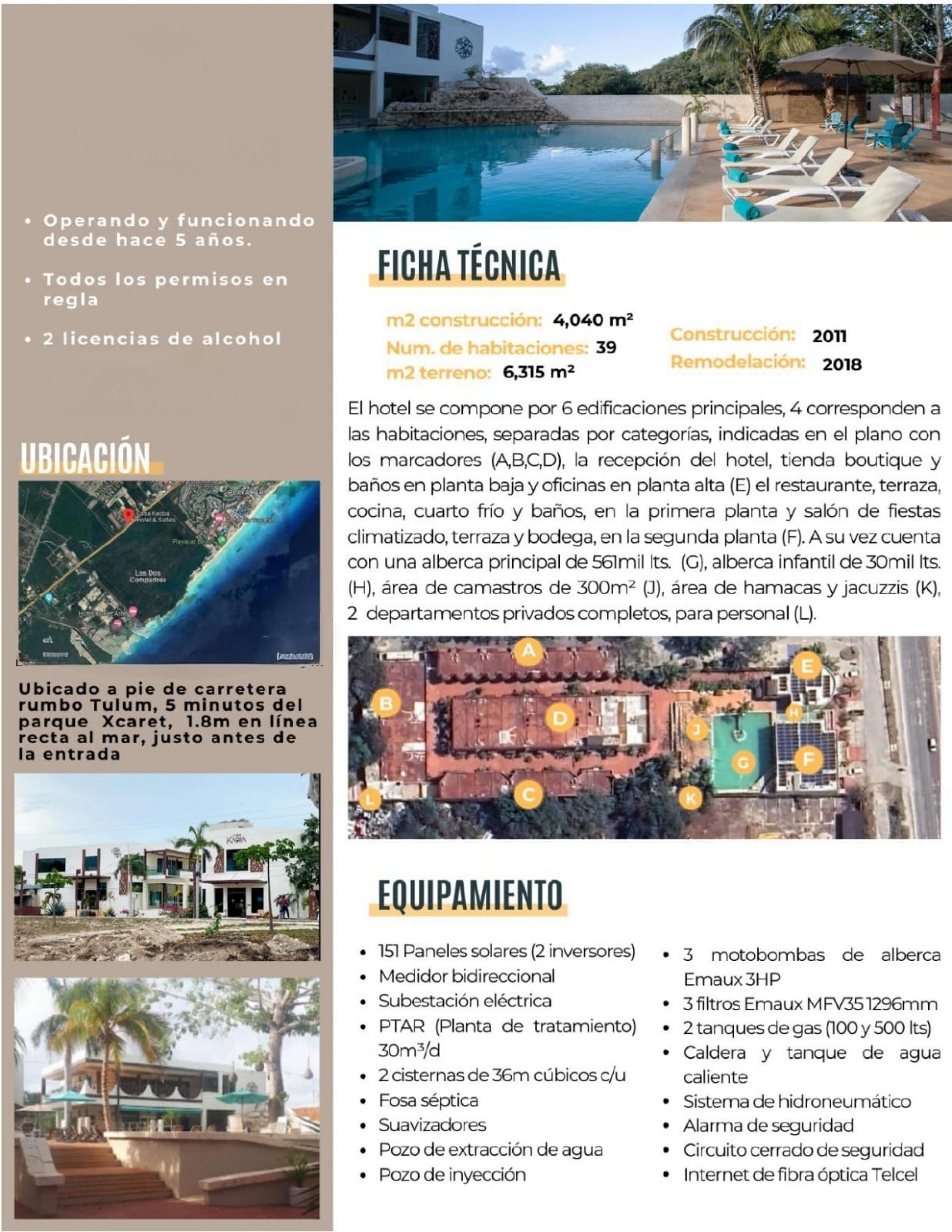 Situated along the route to Tulum, merely five minutes from Xcaret Park, this expansive boutique hotel is operating seamlessly.