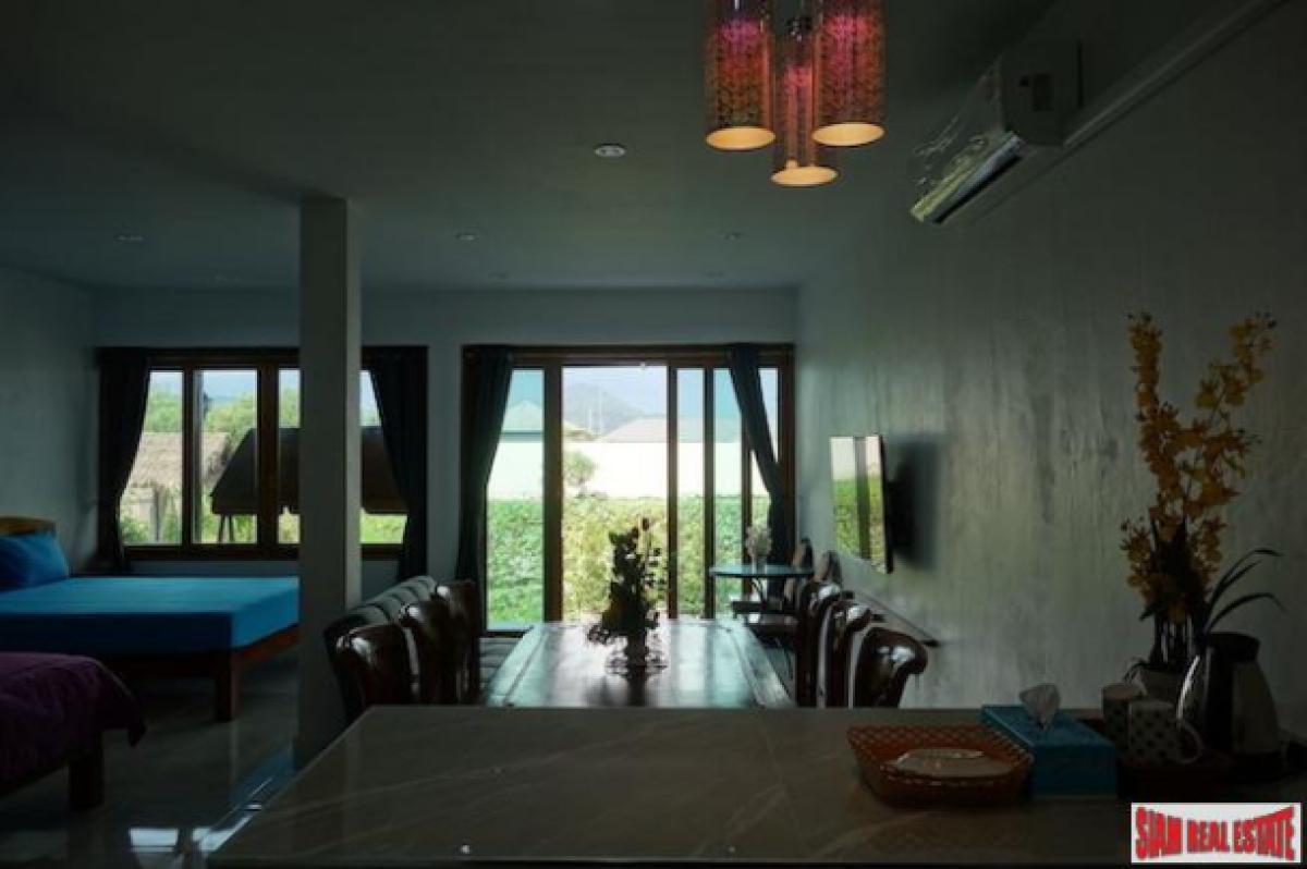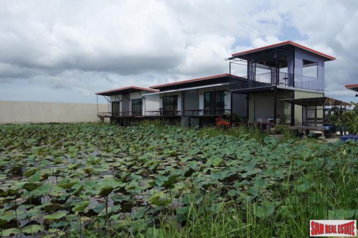 This small resort consists of two buildings with a total of seven ensuite rooms. There is another small building that houses the kitchen and an area of 5-6 dining tables. The property is 2,188 sqm with a natural water lily lagoon.It is situated in a private, quiet and peaceful area of Cherng Talay in a sparsely populated area. On the side of the property is a wide field that has nice mountain views. Lots of fresh area blows throughout the day and both sunrise and sunset views and be enjoyed.