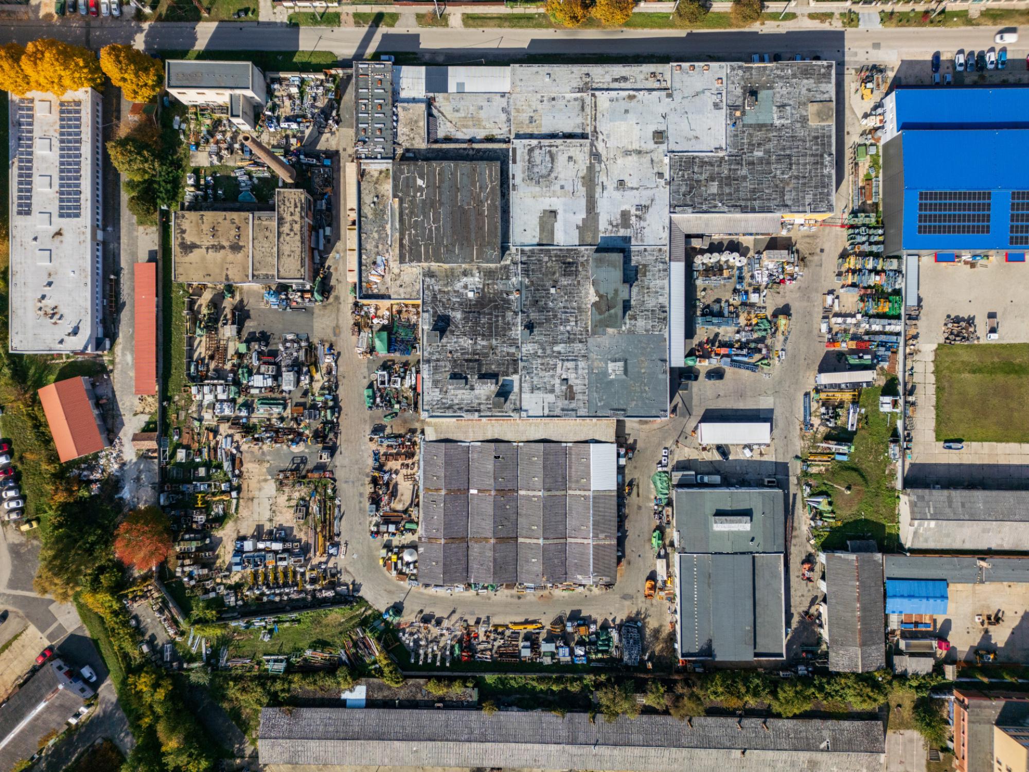 There are 6 industrial halls available, within which additional rooms can be created. (Floor plans can be studied in the attached photos). The average height of the buildings is 6 meters. Currently, the property is being used for machinery trading industrial activities. There are two gates to the site with one way traffic going through.
