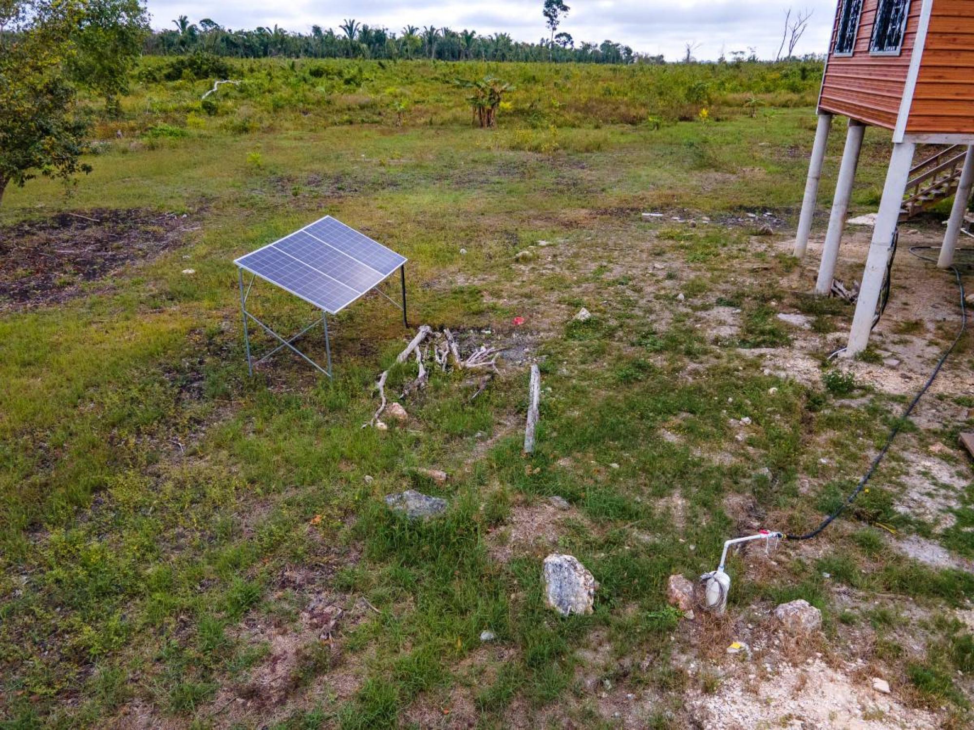 The home is located at the entrance of one of the lots, which is cleared. It has access to electricity and receives water through its solar powered water pump system. The other lot is semi developed.
