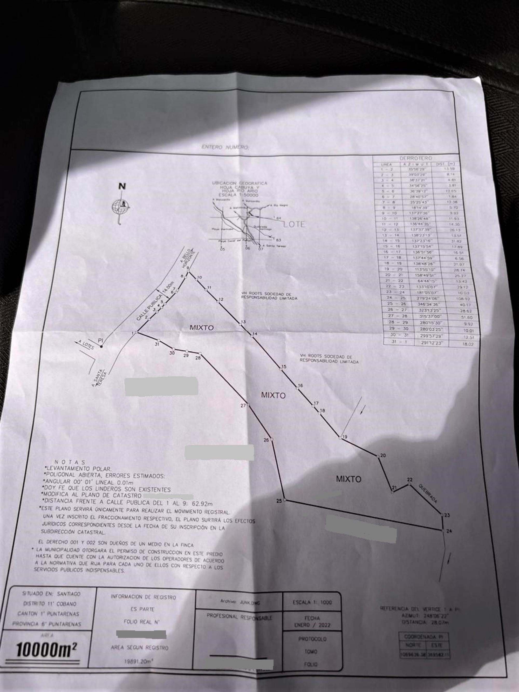 Ocean & Jungle Views at Top of Hermosa Hills.Lot for Sale Lot size 10,000 m2 * Price $100/m2 = $1M USD - a great investment to build on.