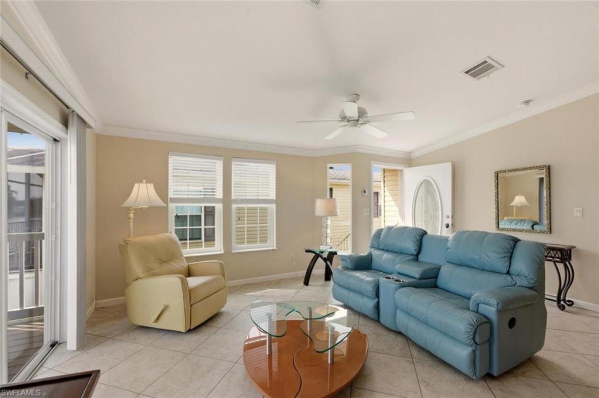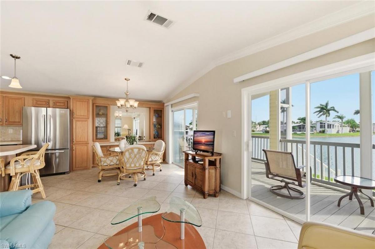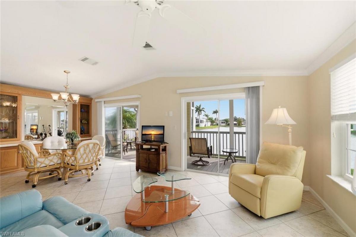 Welcome home to your own waterfront retreat, where every day feels like a permanent vacation. This beautifully maintained two-bedroom, two-bathroom home, built in 2010 by LeeCorp Homes, meets Florida’s modern hurricane and safety standards, offering peace of mind and comfort. Step inside to an open-concept living, kitchen, and dining area bathed in natural light and framed by breathtaking water views. The vaulted ceiling in the living room enhances the sense of space and airiness, while the built-in dining cabinetry adds both elegance and practicality—perfect for showcasing your favorite dinnerware or treasured collectibles. The galley-style kitchen features full-sized appliances, including a range, microwave, and French door refrigerator/freezer, along with generous counter space ideal for cooking, baking, and entertaining. A full-sized laundry area is conveniently located off the central hallway, which leads to a guest bathroom illuminated by a sun tunnel skylight, a guest bedroom with a built-in desk, and a spacious primary suite. Both bedrooms have luxury bamboo flooring while the rest of the living areas are tiled. The bedrooms easily accommodate king-sized beds and offer ample built-in storage. The primary ensuite boasts a walk-in shower and a window that fills the space with natural light. Step out onto the screened lanai to enjoy serene lake views and swaying palms—perfect for sunrise coffee or sunset beverages. Located in the vibrant Silver Lakes community, you’ll have access to a 9-hole golf course, fitness center, pickleball and tennis courts, multiple pools and spas, two clubhouses, and a full calendar of social activities. Just a short drive from the stunning beaches of Marco Island and Naples, as well as top-tier dining, shopping, and entertainment, this is more than a home—it’s a lifestyle. Welcome to Silver Lakes, where your paradise awaits.