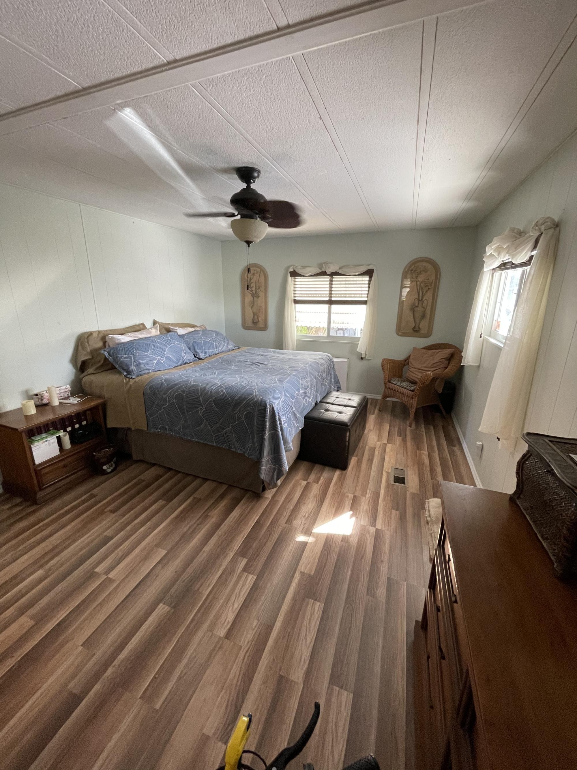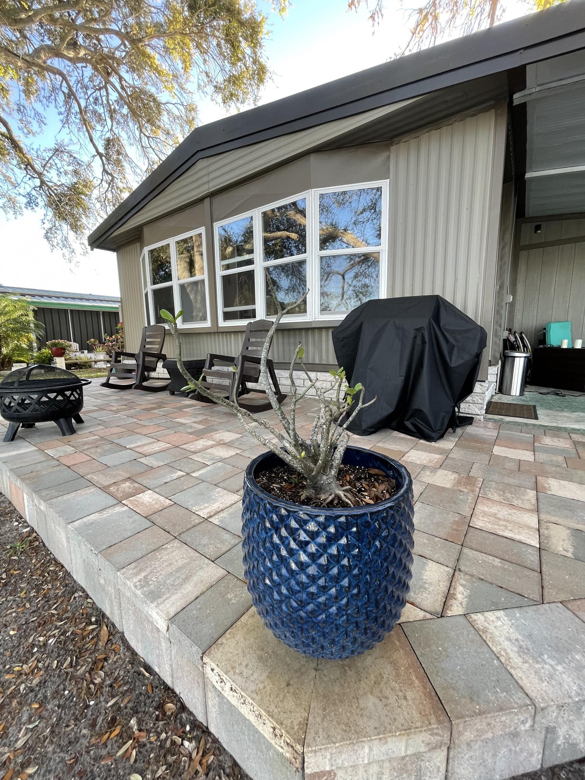 LAKEFRONT! WILDLIFE! CUL-DE-SAC! PRIVATE! Manufactured Home has 2 Bed 2 Bath 2 car carport and additional parking next to the carport with 1,440 sq ft on a cul-de-sac with beautiful trees giving you the utmost privacy, you can’t believe you’re in a mobile home park. With your beautiful backyard facing east enjoying the beautiful sunrises and also avoiding the hot afternoon sun. NEW in 2022, exterior paint, sliding glass doors with built in blinds, both front door entries have new steps and handrail. NEW 2021, roof over the ENTIRE home including the carport and porch with a transferable warranty, rebuilt and enlarged shed (11’x11’), 770 sq ft of pavers, 4-person Spa/Jacuzzi lakeside, washer and dryer. The outdoor living area is very spacious, private and gorgeous. NEW in 2020 hot water heater. NEW in 2019, vapor barrier and insulation, remodeled master bath with marble floors, a wall mounted seat that fold up and down and new cabinets. NEW 2018 both bedrooms laminate wood floor, and a new dishwasher. The home is very spacious with plenty of storage, inside laundry room with cabinets and a table for folding clothes and storage. The master bedroom has a HUGE walk-in closet (11'x5'). All the windows are double-paned for better insulation. This lovely home is in the very desirable CARIBBEAN ISLES Mobile Home Park with a Heated pool, bowling leagues, dances, golf leagues and so much more. The lot rent is $637.00 a month which includes Water, Sewer, Trash, Lawn, Cable & Internet. Close to shopping, beaches, and great restaurants. Must see to appreciate all the beauty. MOTIVATED, will entertain any reasonable offer.Read less