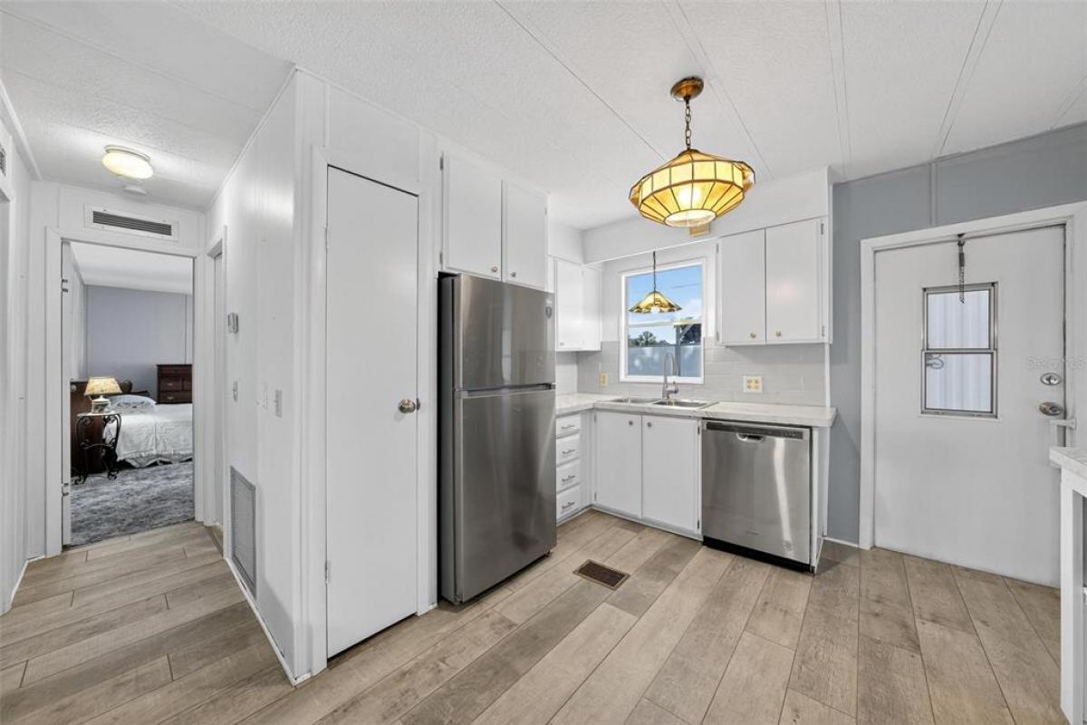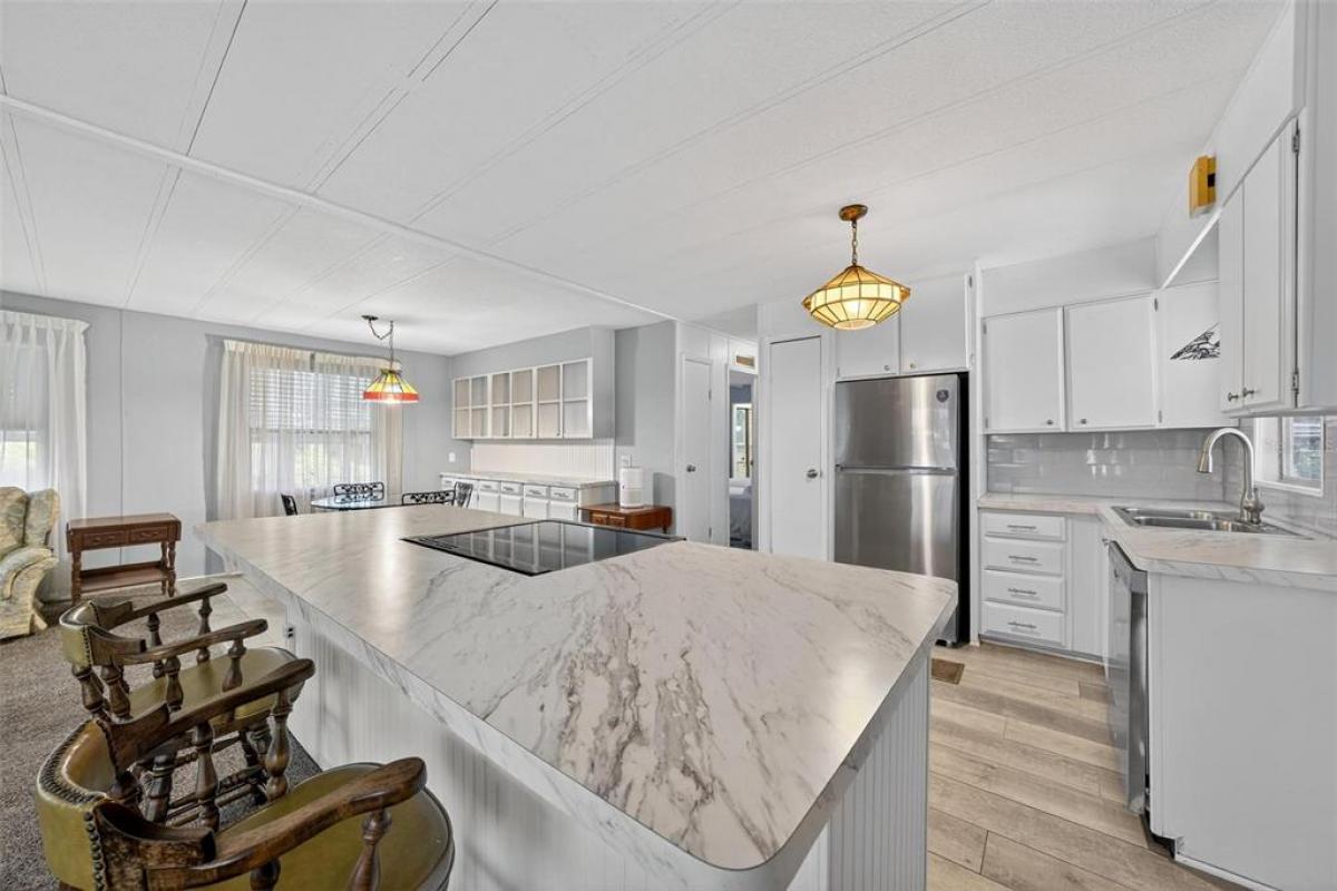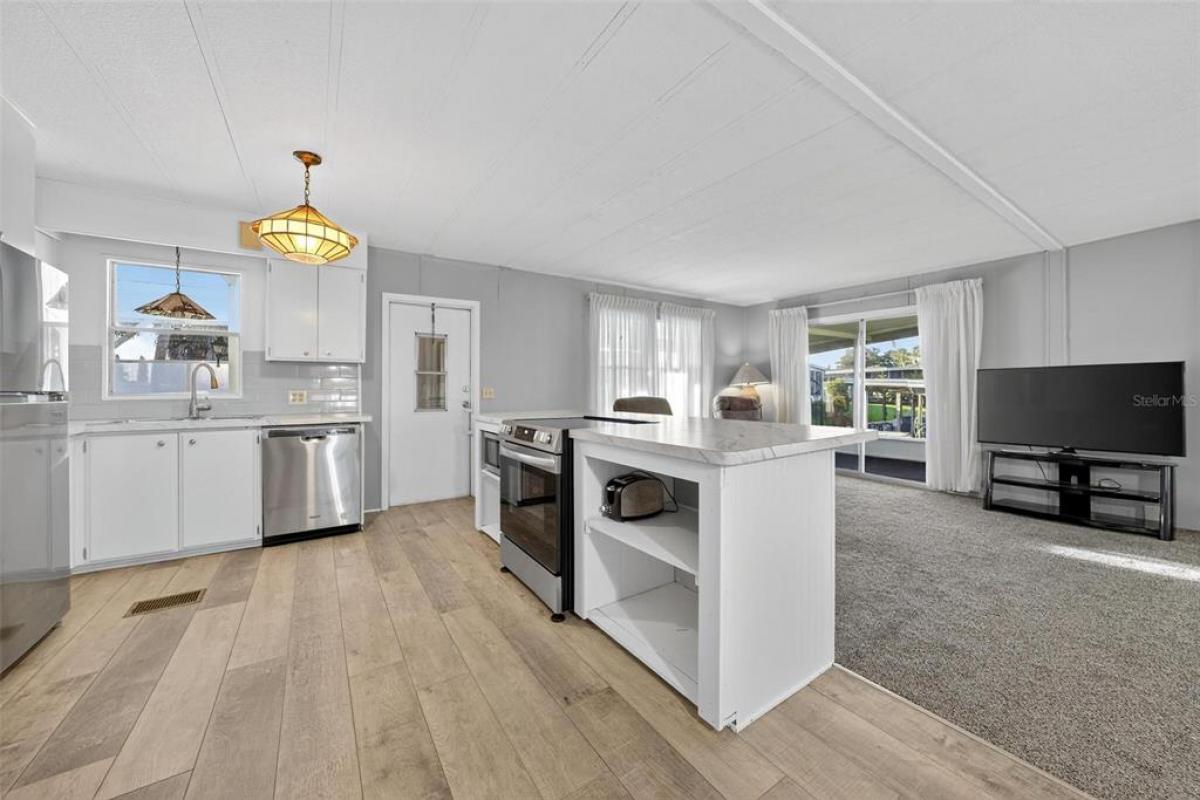If you are looking for Florida Lifestyle Living, look no further! Discover the charm of serene canal-front living in this cozy updated double-wide manufactured home nestled within Imperial Terrace East 55+ community. Featuring LOW HOA FEES, NO LOT RENT, and a plethora of amenities including a Clubhouse, the Annex (with pool room, library and office), a screened in saltwater pool, and shuffleboard courts; this community offers both value and tranquility. This well-maintained and thoughtfully upgraded 2 Bedroom/2 Bath Canal Front Home was built in 1976 and offers 1,152 square feet of comfortable living space. It boasts a light and bright open floor plan with a spacious oversized screen Room with calming picturesque waterfront views. You will admire the fully remodeled kitchen with new appliances, countertops and luxury vinyl plank flooring. Relax and entertain on the Brand New Trex dock (weather resistance/scratch resistance-engineered to withstand sun) and covered boathouse with a boatlift. This home also offers two sheds for plenty of storage and workshop space. Imperial Terrace East is located off Hwy 441, just minutes from the best in Shopping, Dining, Entertainment, County Offices, and State-of-the-art Medical Facilities, PLUS, renowned local destinations - Mount Dora and The Villages! Easily commute to the Beach Coasts, Orlando attractions, Airports and everywhere exciting that makes Floridians love living Central in the Sunshine State, year ‘round or seasonal. This is your chance to own a waterfront retreat that balances comfort, convenience, and lifestyle-schedule your visit today!