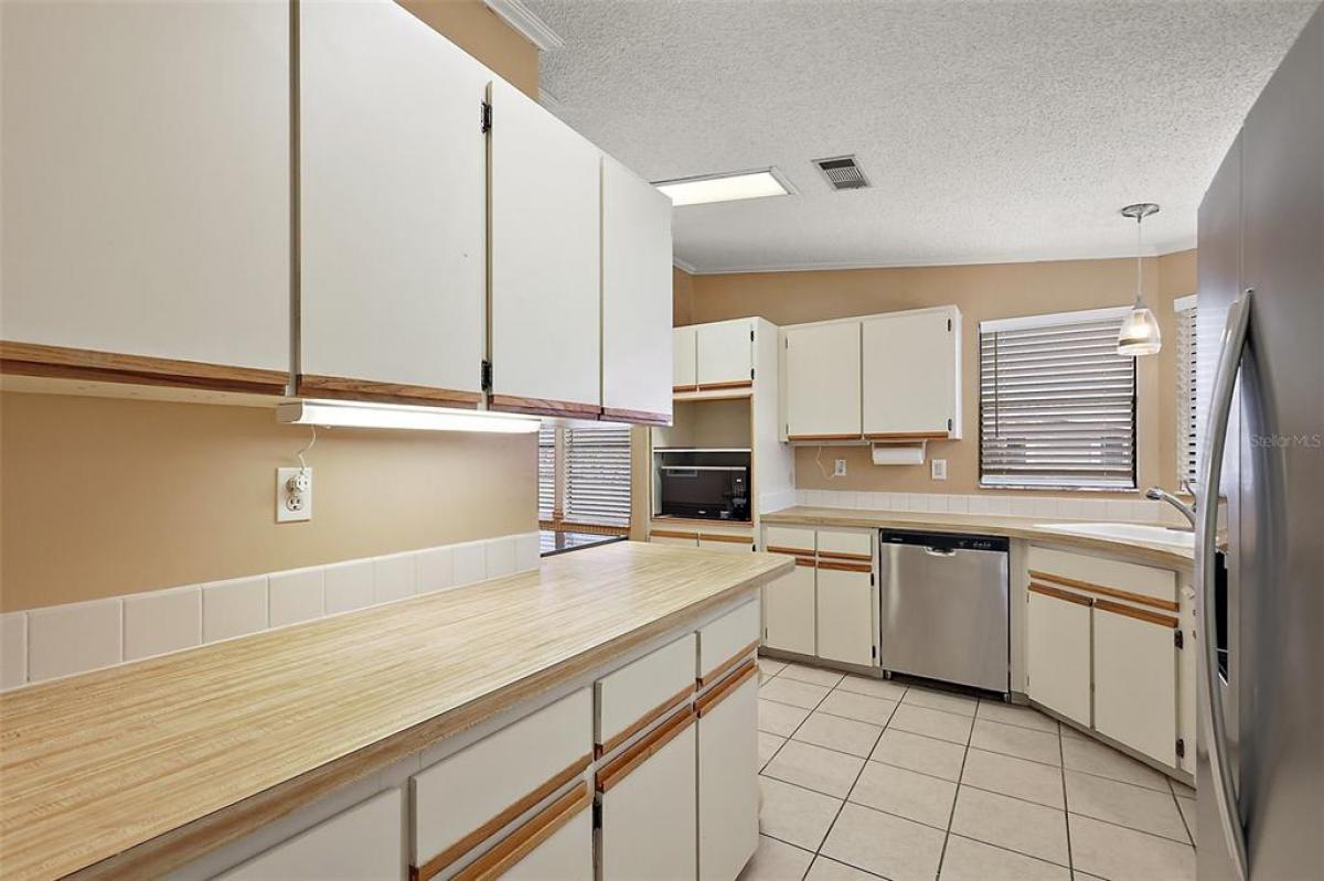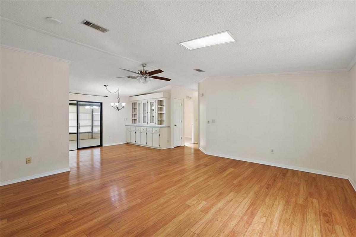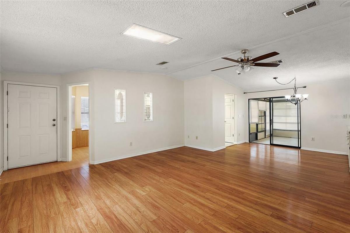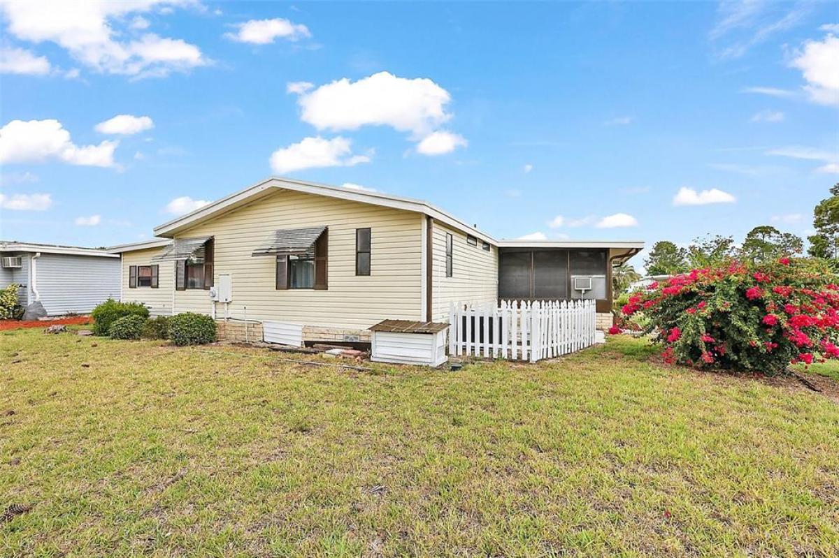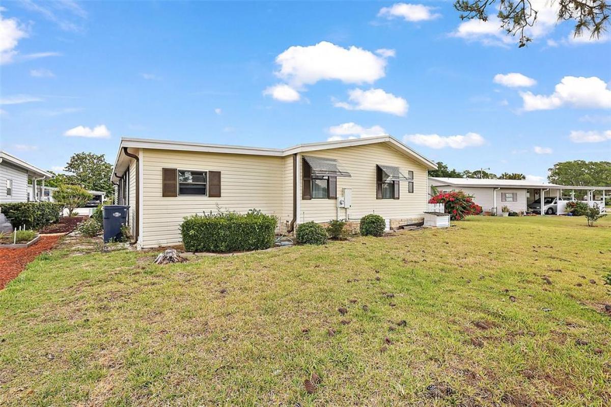 This 2-bedroom 2-bath home with a newly installed roof and skylights is situated on an oversized lot just a stone's throw from the Fox Run Clubhouse and main pool. The open floor plan enhanced by the vaulted ceilings, skylights, and textured walls, give this home a welcoming and upgraded feel. The large kitchen has plenty of cabinet and storage space as well as an eat-in breakfast nook. The formal dining area with its built-ins is located off of the living room accessing your home office and enclosed side porch. The Primary Suite is in the rear of the home affording you privacy and space. The oversized bedroom includes a walk-in closet and adjoins the dressing area which includes a vanity, two lavatories and walk-in shower. Unique to the home is the 10 X 8 office area, which is plumbed for an alternate location for the washer and dryer, which are now located in the workshop. The oversize 14'x40' carport has plenty of room for your vehicles and golf cart with direct access to a large workshop to its rear. Enjoy the community activities Fox Run has to offer with access to the "Harris Chain of Lakes", all of which is anchored around its clubhouse, two pools, and marina. Don't wait, call today and see what the Florida Lifestyle is really like.