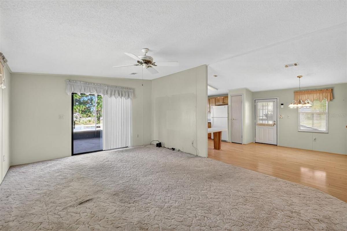 Located in beautiful Fox Run, this 2-bedroom 2-bath home features an open floor plan enhanced by skylights and cathedral ceilings. The large kitchen, with its surround of bay windows with views of the pond, has plenty of storage and counter space and a breakfast bar offering an alternative to the formal dining area with its built-in cabinets. The large master bedroom includes a walk-in closet; its bath area with a single lavatory has a step-in shower. The second bedroom is large enough to accommodate guests or double as your home office. The guest bath, conveniently located near the living area, features a tub. From the living area, you enjoy the sights and tranquil sounds of the pond just outside the 12x12 screen patio, a convenient place to enjoy meals and take in the sights. The extended driveway has plenty of room for company or your golf cart. The 9 x 12 storage /workshop to the back of the carport can handle your storage needs; it even has an alternative washer and dryer hookup. The home has an irrigation well, reducing the cost of city water. Fox Run offers a full social calendar centered around the clubhouse and two pools for a very affordable monthly fee. With a community boat ramp and marina, you can access the "Harris Chain of Lakes" for a day on the water, or you can enjoy a stroll on the boardwalk. Call today to arrange your private showing and join the fun.