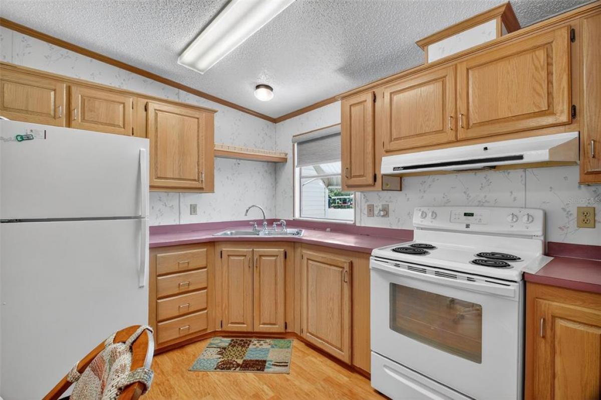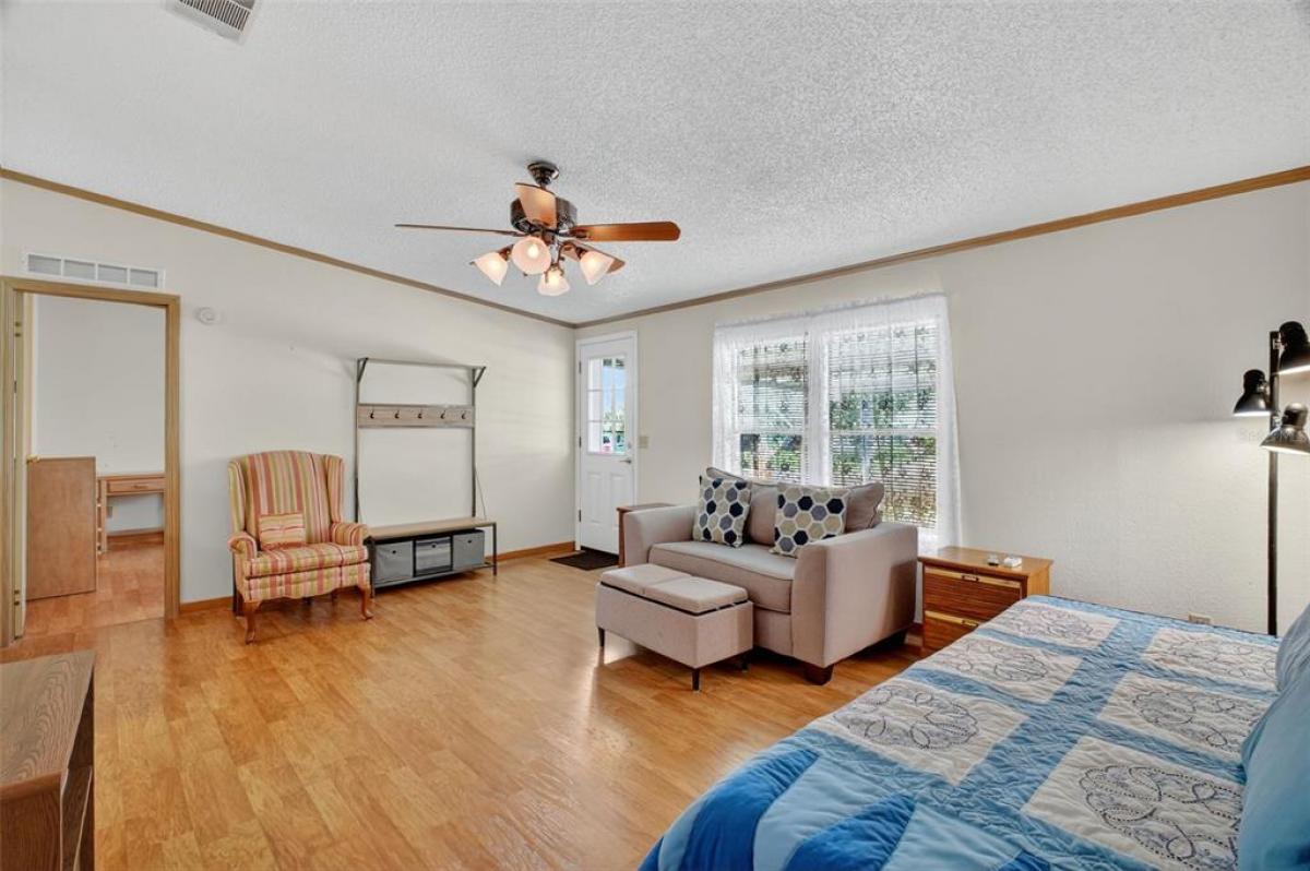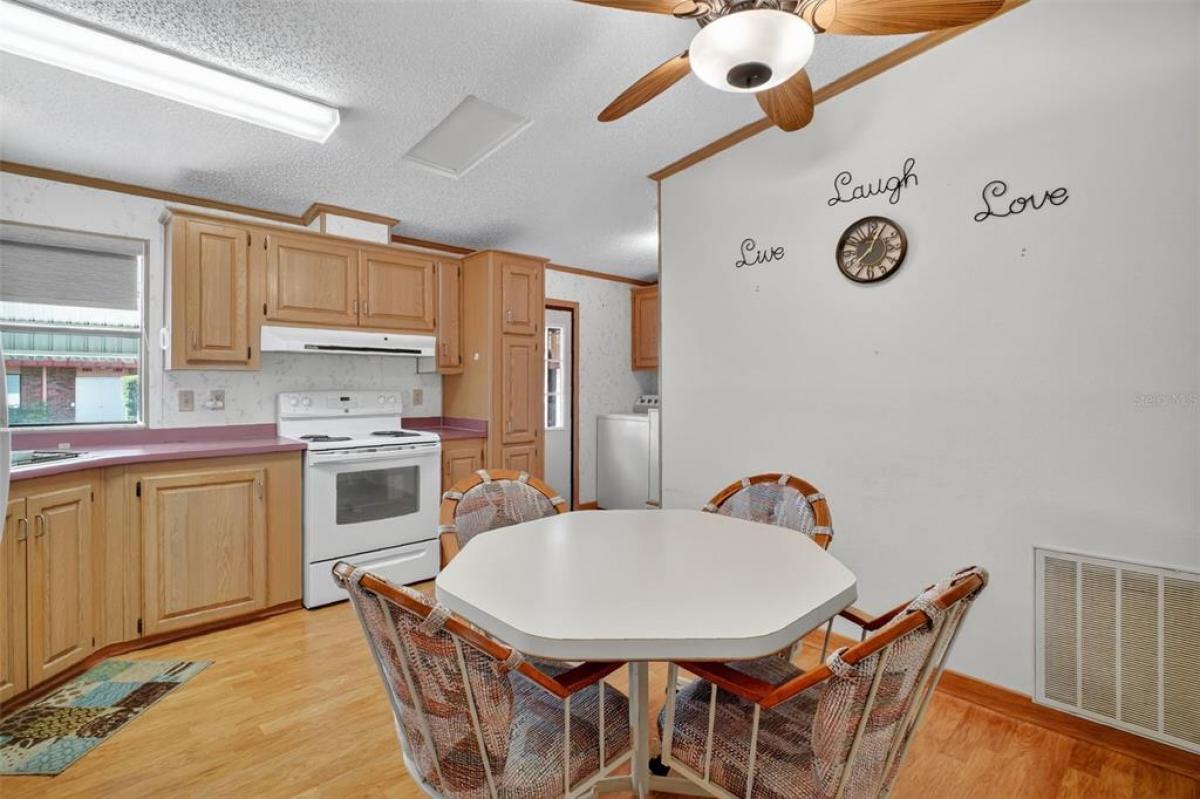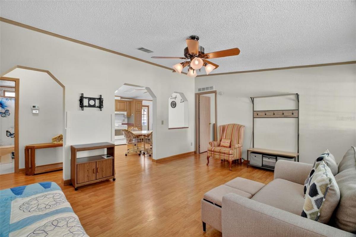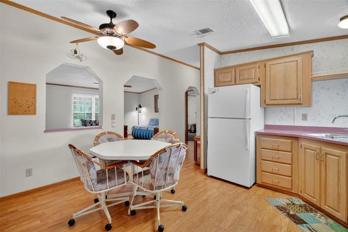 Located in the desirable Fox Run 55+ community, this well-maintained and partially furnished 3-bedroom 2-bath home is situated on a prime lot just a stone's throw from the Community Clubhouse and pool. As you walk in, you notice how open and efficient the living area flows into the kitchen and dining area, complemented by plenty of windows and natural light. The primary suite, located on the opposite side of the guest bedrooms, provides plenty of privacy when company arrives. It contains a walk-in closet, a single sink, and a shower. Need a dedicated office or hobby room; you have the option of using one of the guest bedrooms for that purpose. Enjoy the outdoors from your screened back porch located just steps away from the kitchen; a great place for morning coffee or a casual meal. all just a few steps away from the pool and clubhouse.. The storage area is conveniently located at the back of the home, has plenty of room for your mower or BBQ grill, with access to the oversized carport and driveway, all providing ample space for friends with cars and golf carts when visiting. Fox Run has a full social calendar centered around the clubhouse and its two pools and marina area, all for a very low monthly HOA fee. Enjoy access to the "Harris Chain of Lakes" from the community boat ramp and marina, or just enjoy fishing from the dock and boardwalk. Enjoy the "Fox Run Lifestyle", call and arrange for your private showing today.