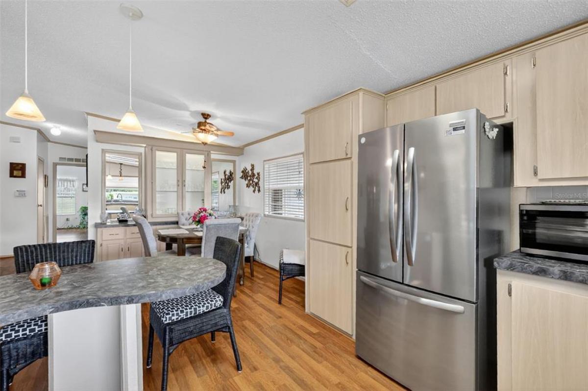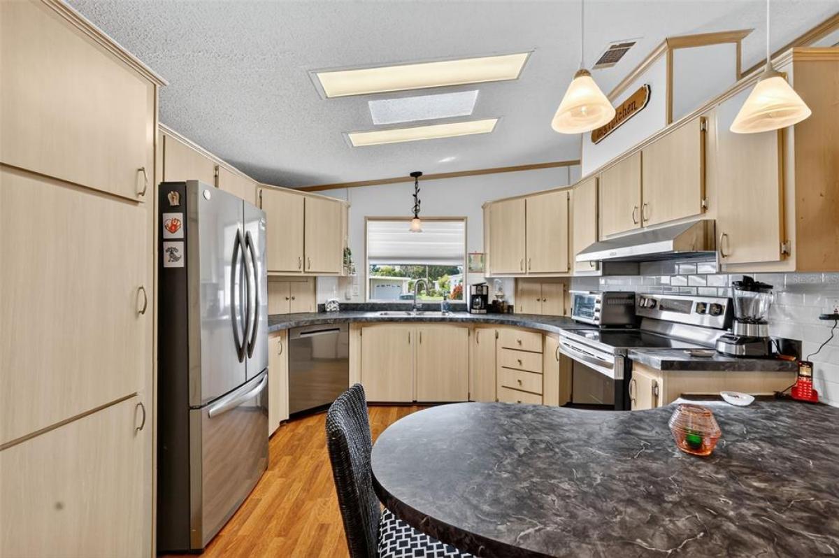 Welcome to this tastefully updated 2 bedroom 2 bath home located in the desirable Fox Run Community.The open floor plan, which is enhanced by cathedral ceilings and natural light, has a central living area with access to the front screened porch with its surround of windows, making it a great place to enjoy the outside views. The updated oversized kitchen has plenty of counter and cabinet space and even includes an eat-in kitchen bar, just steps away from the formal dining area. The primary suite which is located at the back of the home, contains a large walk-in closet with access to a bath and dressing area with twin lavatories and step-in shower. The second bedroom has direct access to the guest bathroom via the extra-wide hallway, which leads to the indoor laundry room. To the back of the carport with its oversize driveway, you access a large storage/workshop, offering you plenty of options for your storage or hobby needs. The Fox Run 55+ community offers a full social calendar of activities centered around its clubhouse and two pools for a reasonable monthly fee. Enjoy a day of fishing or cruising on the "Harris Chain of Lakes" via the community marina or boat ramp or just enjoy a stroll on the boardwalk along the creek. Call today to arrange for your showing.