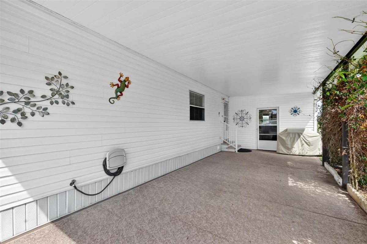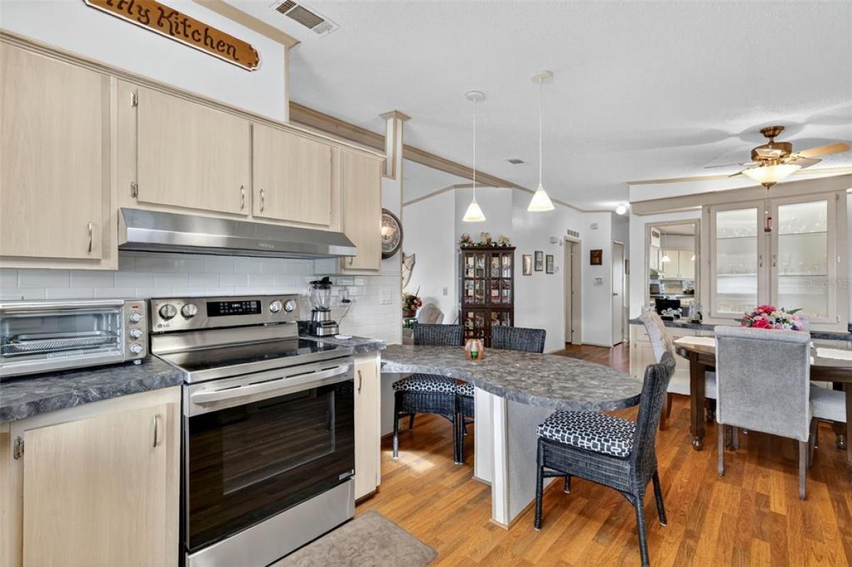 Welcome to this tastefully updated 2 bedroom 2 bath home located in the desirable Fox Run Community.The open floor plan, which is enhanced by cathedral ceilings and natural light, has a central living area with access to the front screened porch with its surround of windows, making it a great place to enjoy the outside views. The updated oversized kitchen has plenty of counter and cabinet space and even includes an eat-in kitchen bar, just steps away from the formal dining area. The primary suite which is located at the back of the home, contains a large walk-in closet with access to a bath and dressing area with twin lavatories and step-in shower. The second bedroom has direct access to the guest bathroom via the extra-wide hallway, which leads to the indoor laundry room. To the back of the carport with its oversize driveway, you access a large storage/workshop, offering you plenty of options for your storage or hobby needs. The Fox Run 55+ community offers a full social calendar of activities centered around its clubhouse and two pools for a reasonable monthly fee. Enjoy a day of fishing or cruising on the "Harris Chain of Lakes" via the community marina or boat ramp or just enjoy a stroll on the boardwalk along the creek. Call today to arrange for your showing.