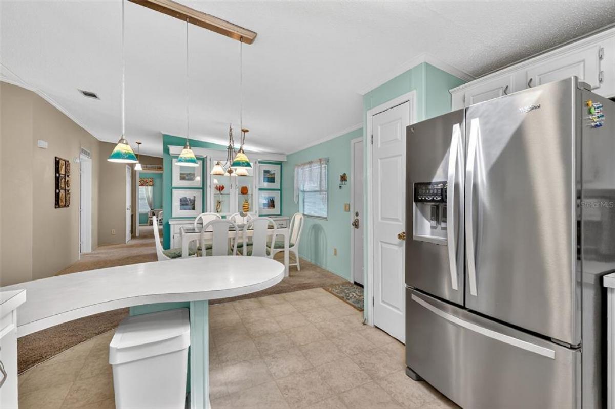 This beautiful 2-bedroom 2-bath home, which is being offered furnished, is located in Fox Run and was customized by its original owner, providing improved access and mobility to all areas. As you walk in, you notice the open and bright feel from volume ceilings enhanced by plenty of windows and skylights. The living room accesses the large enclosed screen porch, with a secondary entrance. The large eat-in kitchen has plenty of counter and storage space, and even has a pass-through window and counter to the front porch. The formal dining area with its built-in shelving and cabinets is just steps away from the kitchen. An oversized hallway leads to the primary suite, second bedroom, laundry room, and bath. The primary suite spans the back of the home, its wall-to-wall, walk-in closet provides plenty of storage, and the twin lavatory bathroom with shower has a dressing and vanity area. The second bedroom with a walk-in closet is conveniently located to the guest bathroom, which contains a tub. As you step outside, you see the large storage/workshop conveniently located at the back of the carport. Recent upgrades include: new metal roof 2024, HVAC 2022, water heater 2017, and repaint. Fox Run has a full calendar of social activities to enjoy, focused around its clubhouse, two pools, and marina, all for a very reasonable monthly fee. With access to the "Harris Chain of Lakes," you can enjoy a day cruising or fishing with neighbors and friends. Call today to arrange for your private showing!