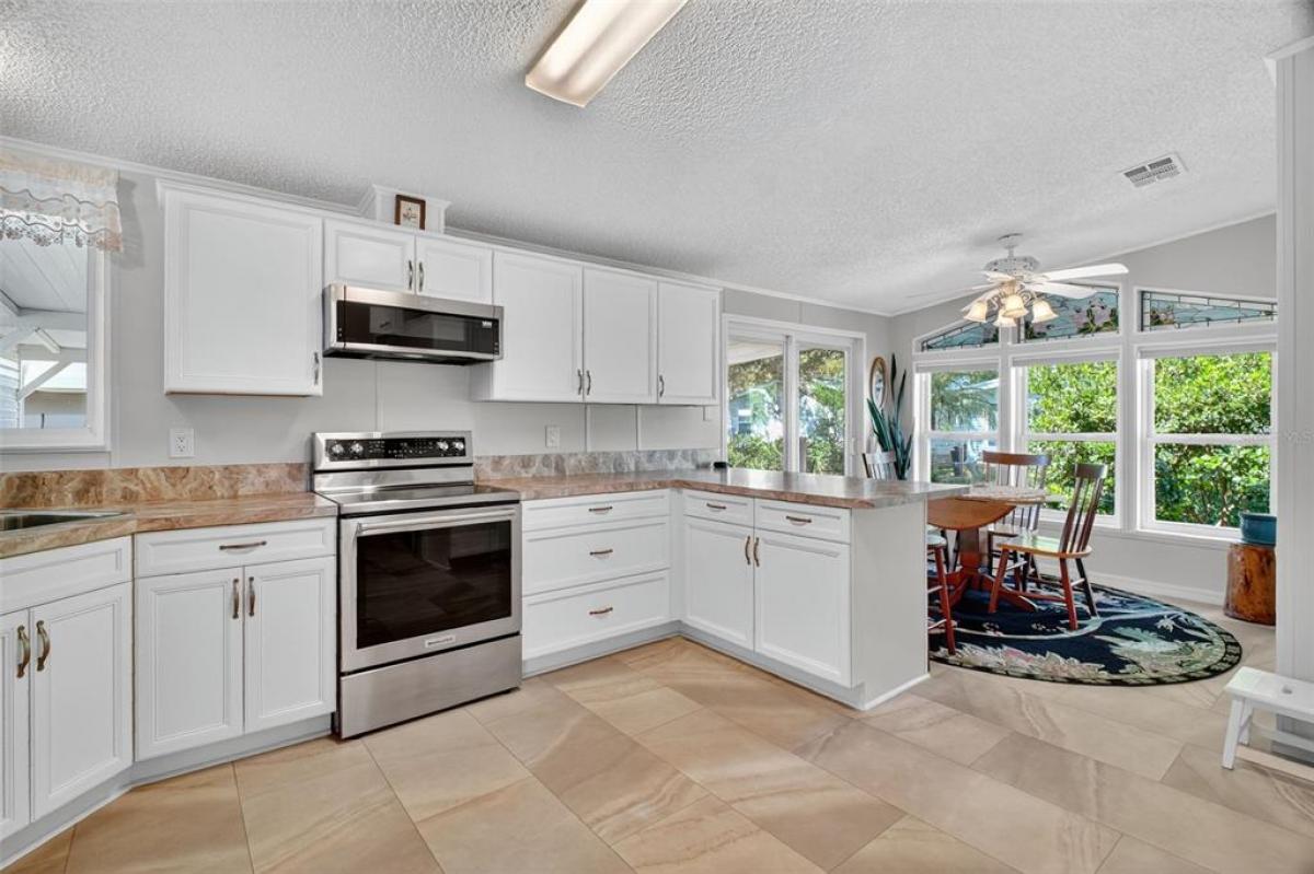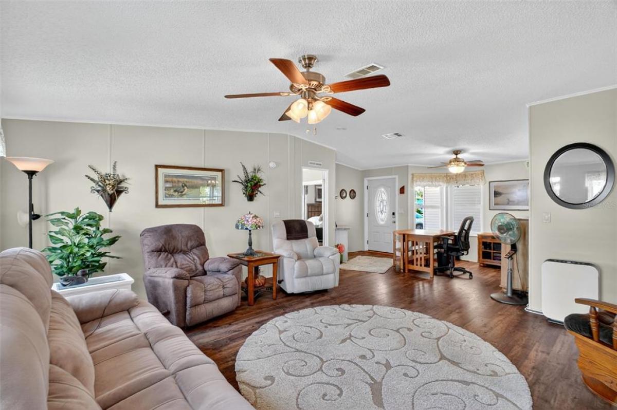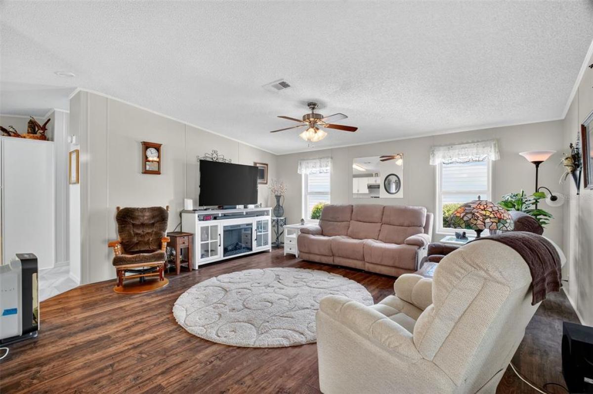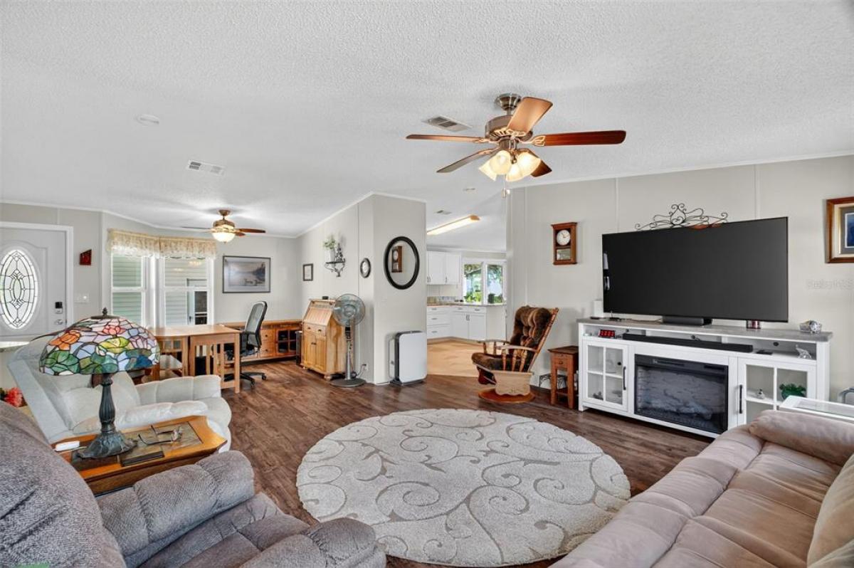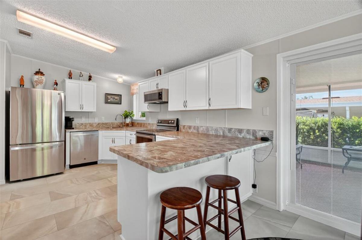 Here is your opportunity to own an impeccably maintained 2-bedroom 2-bath home in the sought-after Fox Run Community. As you walk in, you notice the open and airy feeling enhanced by the home's cathedral ceilings, neutral colors, natural light, and open floor plan. The living area that includes a formal dining area leads into the spacious remodeled kitchen with its stainless steel appliances, new cabinets, countertops, fixtures, and sink, affording you plenty of storage and prep area. Whether you choose to enjoy a meal at the breakfast bar or the kitchen's dining area, you will enjoy the outdoor views by the surround of windows and sliding glass door access to the covered screened porch, and your access to the backyard. The split floor plan locates the primary suite to the front of the home. The large bedroom with plenty of closet space opens into the dressing area and remodeled bath area with twin sinks, and a glass-enclosed step-in shower. The second bedroom, located at the back of the home, affording privacy when company visits, is just steps away from the remodeled guest bathroom. The carport has been extended to include a workshop/storage area as well as an additional outdoor sitting area. for yet another area to enjoy the outdoors, all with plenty of room for your golf cart. Landscape curbing and mulch walk areas further enhance the home's curb appeal and access to the beautifully landscaped, shaded back yard. Additional improvements include the installation of insulated windows and a sliding glass door, with designer Levelor window shades, Armstrong laminates throughout the home, and a 24-gauge metal roof installed in 2018, to name a few. Enjoy all of the social activities that Fox Run has to offer, situated around the clubhouse and two pools, while you enjoy access provided by its marina and boat ramp to the "Harris Chain of Lakes". Call today to arrange for your private showing.