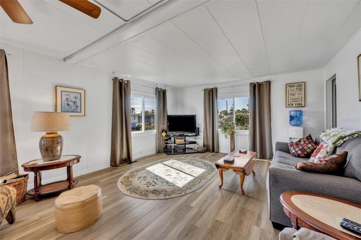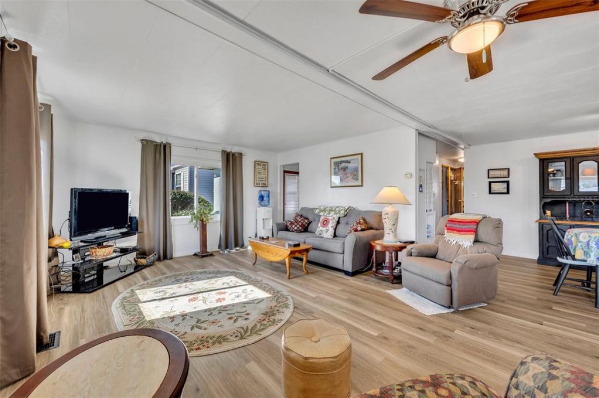Welcome to the 55+ Molokai Co-Op community! This turn key, updated 2- bedroom, 2- bathroom home has recently undergone several 2024 updates, including 14 new windows, upgraded flooring, new vapor barrier and piers as well as fresh paint inside and out. Situated on a corner lot, this location is steps away from amenities such as the community pool, clubhouse, shuffleboard court and mail room. The low HOA fee includes basic cable, water, sewer and trash pickup. Schedule your appointment today to see all this home and community have to offer!
