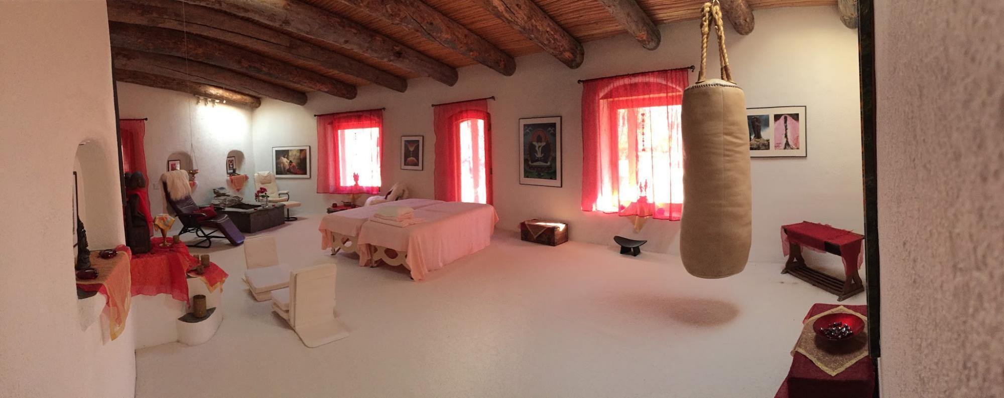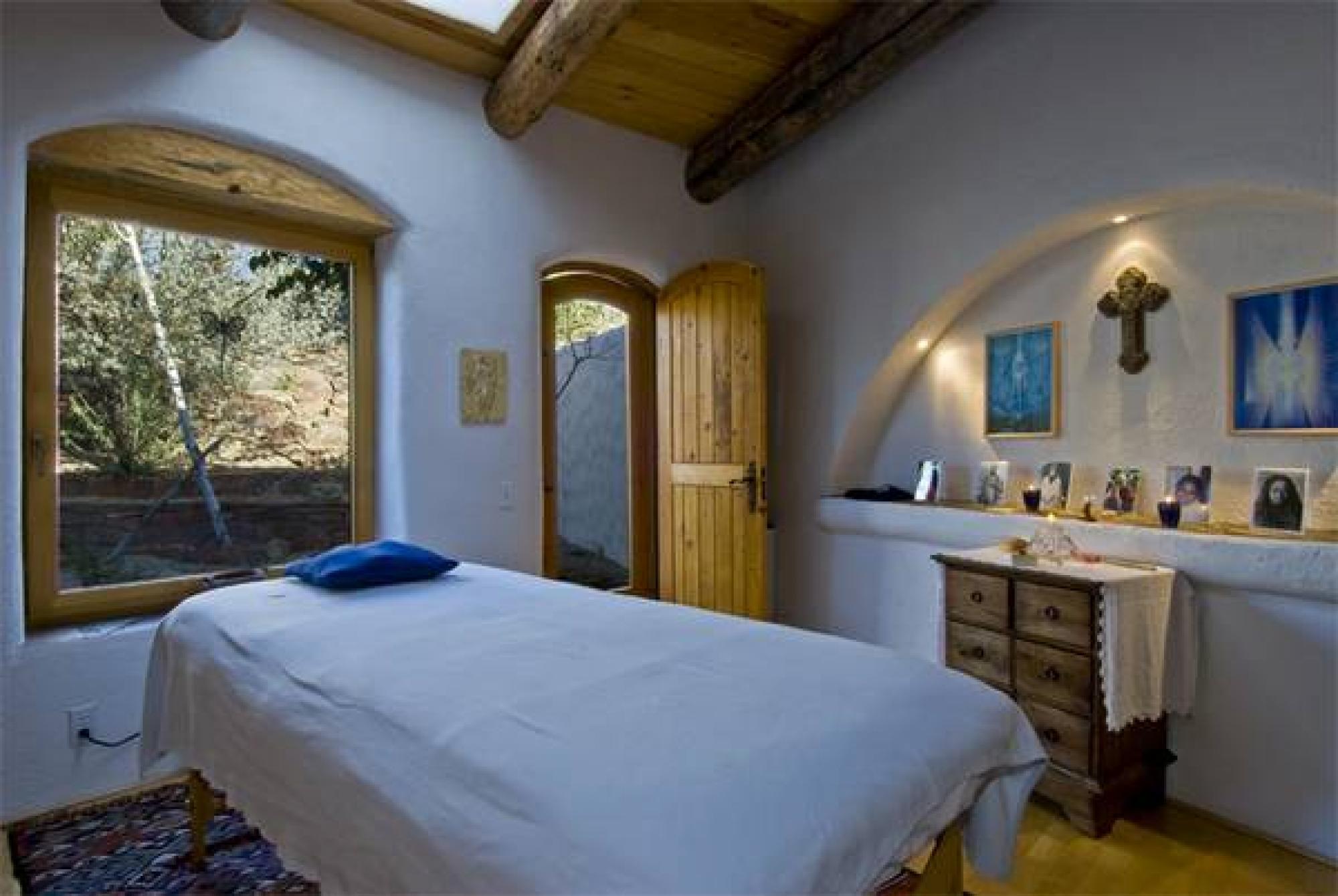 Nestled amid northern New Mexico’s high desert, this fully furnished healing retreat offers privacy and tranquility on 3.7 serene acres just 18 miles north of Santa Fe. Zoned for home business use, the property features a grand, extra-large temple with wood fireplace, two dedicated treatment rooms, a spacious workshop area ideal for small-group activities and a Japanese style kitchen and dining room for 30 people. The six-bedroom lodge includes an open-concept living room, kitchen, and dining area, while a private three-bedroom residence provides additional comfort and seclusion. Turnkey wellness facility designed for practitioners, blending spiritual and residential spaces with modern comforts. Ample lodging and dining space, multiple therapy and workshop areas, and a secluded high-desert setting make this retreat an exceptional opportunity for health and wellness professionals.