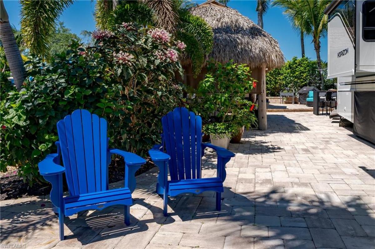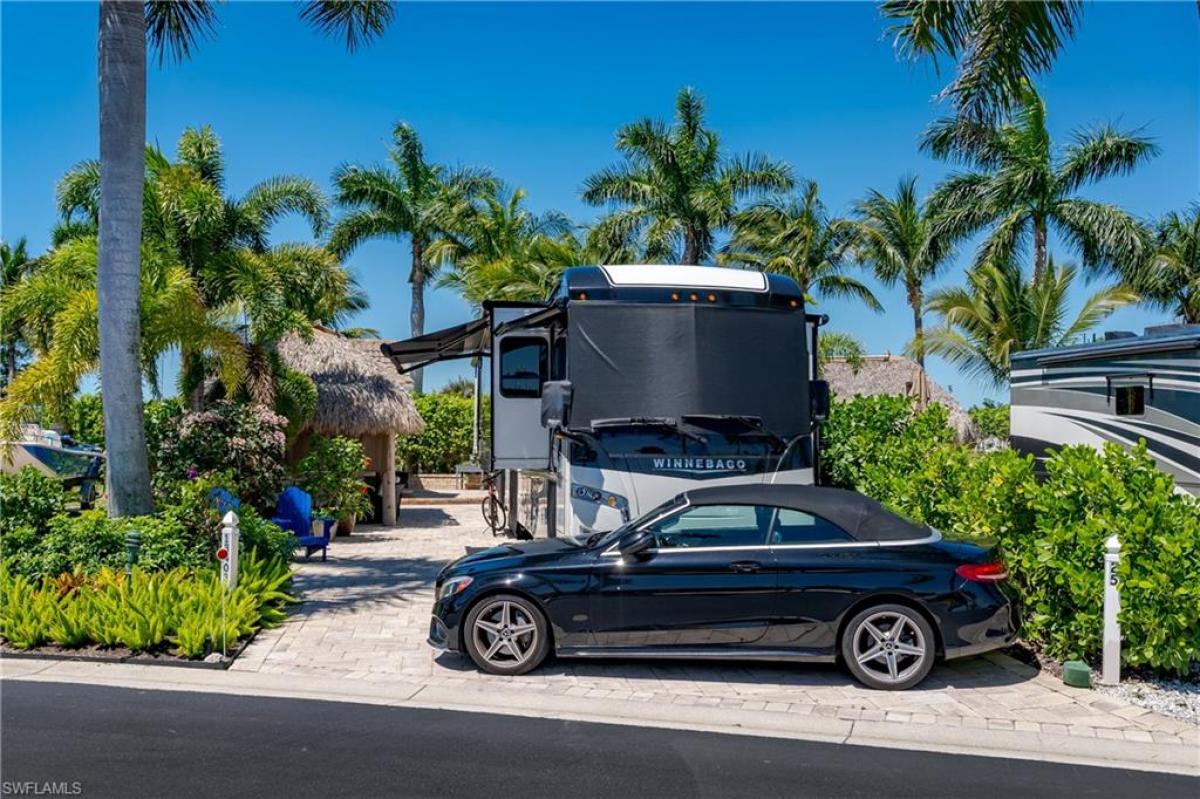Lot 25 – Tropical Waterfront Paradise with Private Dock & CasitaAn Incredible Value in Naples Motorcoach ResortWelcome to Lot 25, a truly captivating waterfront retreat where luxury, tropical beauty, and everyday convenience come together in one extraordinary package. From the moment you drive your Class A Motorcoach through the gates of Naples Motorcoach Resort and down the royal-palm-lined boulevard, you’ll know you’ve arrived somewhere special.As you pull into Lot 25—your own private oasis—you’re surrounded by lush, meticulously designed landscaping that sets the tone for relaxation. Your first stop: a charming tiki hut, the perfect spot to savor your morning coffee, unwind with friends, or simply enjoy the warm Florida breezes. Nearby, an additional outdoor dining area awaits.Continue exploring and you’ll discover the crown jewel of this property: a beautifully appointed casita, offering exceptional comfort and versatility. Featuring a living room with a space-saving murphy bed, a well-equipped kitchen, an elegant bathroom, soaring ceilings, abundant storage, and bright windows adorned with crisp plantation shutters, this casita provides effortless indoor-outdoor living. Oversized glass doors invite natural light and tropical views into every corner.And then—just when you think it can’t possibly get better—you step outside and follow the paver pathway to your private, oversized dock on a canal with indirect Gulf access. Complete with outdoor furniture, fire table, and oversized umbrella, this waterfront haven is where memories are made. Watch for manatee, snook, and the occasional curious shark as you relax with a beverage. Your boat, easily launched from the community boat ramp, waits right at your dock for sunset cruises through peaceful mangrove-lined waterways leading to the Gulf.Picture this: wine, close friends, and a glowing sky as the sun sets over the water—an experience you can enjoy again and again from your own residential paradise.Naples Motorcoach Resort is a Class-A-only, luxury resort featuring:• A stunning infinity pool overlooking the lake and fountain• Hot spa, fitness center, and men’s & ladies’ saunas• Community kitchen and elegant clubhouse for private or resort events• Two satellite pools, each with their own hot spa, restrooms, and laundry• A dedicated dog park for your furry travel companionsLot 25 is more than a property—it’s a lifestyle. A tropical waterfront haven with a rare casita, private dock, and exceptional value in one of the area’s most desirable resorts.Come experience paradise. Come home to Lot 25.