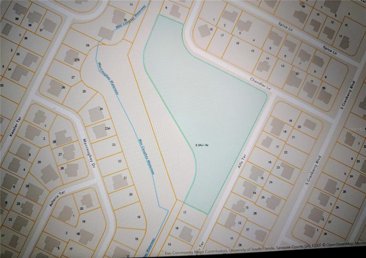 RARE OPPORTUNITY – 5.3 ACRES IN HIGH-DEMAND NORTH PORT! One of the last remaining vacant tracts in this extremely popular neighborhood just off Cranberry Blvd! This expansive 5.3-acre R-1 zoned property offers endless potential for builders, developers, or anyone seeking to create their Florida dream oasis. Surrounded by city-maintained streets with streetlights and power poles already in place, and CITY WATER AVAILABLE, this prime parcel checks all the boxes for convenience, accessibility, and future growth.Attention builders: the size, location, and zoning make this an ideal opportunity for a small residential community, luxury estate homes, or a secluded private compound. North Port is one of the fastest-growing cities in the entire country, and parcels of this size simply do not come up often. Potential to subdivide and rezone. Perfectly situated just minutes from Wellen Park, Warm Mineral Springs, Siesta Key, Venice Beaches, shopping, dining, and medical facilities—including the NEW Sarasota Memorial Hospital now under construction. This area continues to explode with new development, making this the ideal time to secure your footprint.No verbal offers will be considered. Don’t miss your chance to own a rare piece of North Port’s future!