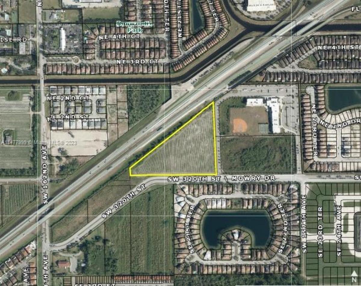 9.49 acres currently in agriculture, may be rezoned Commercial per Homestead Planning Dept. Adjacent to and with excellent visibility from Florida Turnpike Extension (State Road 821) at Mowry Dr. / SW 320 St. Mostly surrounded by new residential developments and next to Everglades Preparatory Academy. Suitable for hotel, restaurant and other commercial uses. Tenant nursery has the right to remove plant inventory.