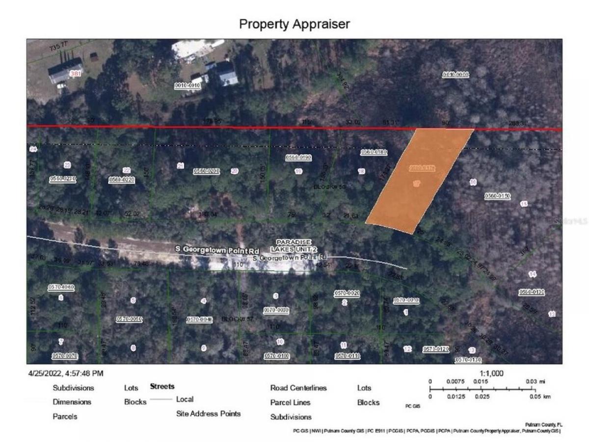 Platted lot and I am not sure where the road and electrical ends at this time. Not far from Lake George off the St Johns River. I have spoken to the management company for Georgetown Estates and once the new owner builds and settles in they may join the Georgetown Assoc for the Lake George Park and amenities. Which includes access to Lake George.