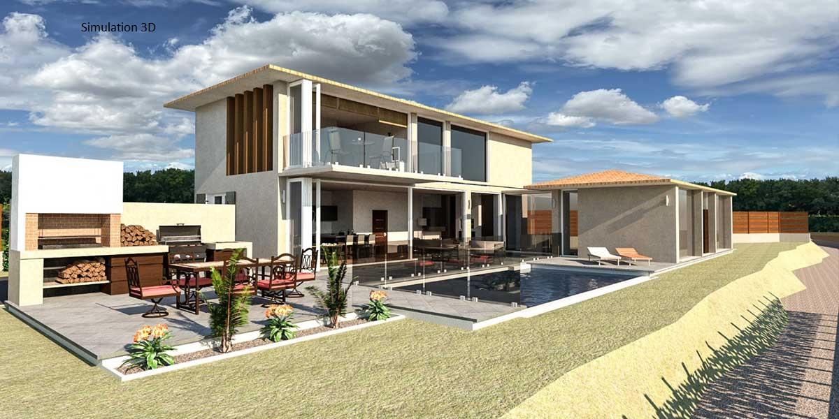 The attached 3D simulation is a property designed by UK Architect Sam Ledger to show one possibility for how to use the land for the perfect new build property.