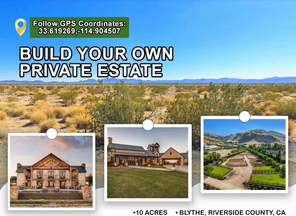 Camping/RV enthusiasts welcome! Harness the abundant sunshine of Southern California by exploring the potential for solar energy generation on this vast property. Now is the time to develop or invest in this 10-acre zoned Open Space, Residential Acreage, Single Family Residential parcel in Blythe, California. This expansive property offers a prime location for those seeking to embrace the charm of rural living or recreational settings while still enjoying close proximity to modern amenities. The property is in Blythe, the southeastern part of California, near the Arizona border within close driving proximity to the Colorado River and Parker Dam. It is approximately 225 miles east of Los Angeles and 150 miles west of Phoenix, Arizona. Boasting vast open spaces and breathtaking views, this land presents a blank canvas for creating the ultimate private state or creative project. This plot for sale offers easy access to major Highway 10 from Wiley's Well - Riverside County Rest Stop offers easy accessibility to major transportation routes, ensuring seamless connectivity to neighboring cities and beyond. While basking in nature's serenity, you'll still be close to modern conveniences, including shopping centers, schools, medical facilities, and restaurants. This property presents a promising opportunity for future development or land banking, with Blythe experiencing steady growth and potential for increased value now is the perfect time to secure your strategic multi-purpose use location. Take advantage of the burgeoning real estate market and capitalize on the future value appreciation of this well-situated property. Contact us today at 562-304-8970 or visit our website to learn more about this parcel and about financing!