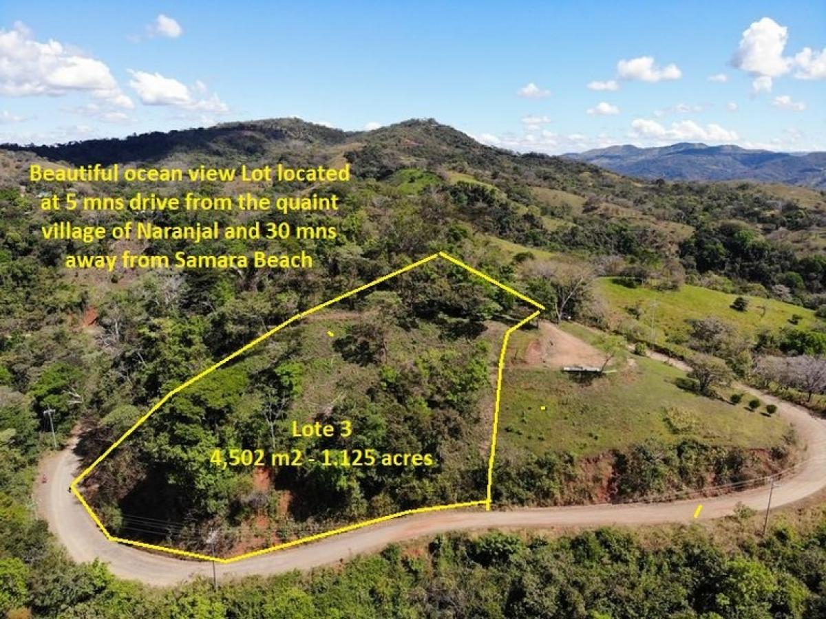 Lote Mirador # 3 is found situated about 680 meters above sea level and 15 minutes from the paved national road 150. The region is sparsely inhabited by friendly local farmers and their families. The beautiful mountain road leading to the village is fairly well-maintained year-round and offers some amazing views that are well worth seeing. Heading west from the Lots you will reach the rural town of Zaragoza before heading down to Nosara and World Famous Guillones Beach. Lote Mirador #3 boasts a large buildable pad area offering breathtaking Pacific Ocean views. Due to its road frontage touching a public road this lot is suitable for mixed use zoning and can be combined together with Lot # 2 and/or Lot # 4 to create even larger building pads and surrounding green areas. The Lot has access to electricity, water supplied by the local ASADA and WIMAX high speed internet Lot 3 4502 m2 - $249,000 The location of this lot is very attractive as it enjoys the benefits of a cooler elevated climate and a rural atmosphere with an authentic local culture that will make you feel like you were back in the old times, but with all the amenities and touristic attractions of today close by; hospitals and doctors, supermarkets, schools, lawyers, organics markets, surf schools, horseback riding, road bikes, hiking trails in the mountains, and national parks all within the lovely colonial city of Nicoya and Playa Samara. Please contact us today to inquire further about Lotes Mirador #3 and to schedule a private showing at info@pacifichomescostarica.com Telephone +506 8366.0110 via Whats App
