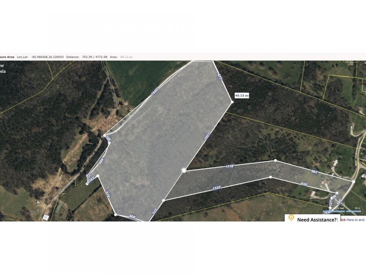 40 acres, partially cleared off. Pending Survey. City water available at the road, electricity available at the road. Spring fed creek runs across the front of property.