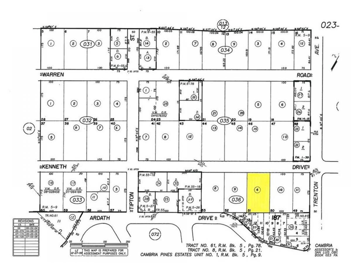 Kenneth Drive. A mostly level 100#039; x 175#039; estate size lot approx. 17,500sf. A quiet less traveled paved road not far to the beach or the trails at Fiscalini Ranch Preserve. Options are to keep the current water position or exchange for something lower on the list. It#039;s whatever you decide. Come and see why this well priced large future building site is something to consider buying and holding for that future Cambria home you#039;ve been dreaming of. Offered for $59,900.
