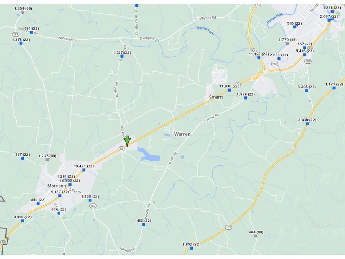 Almost and Acre ( .8 ), Commercial Corner Lot on TN-55 (Manchester Hwy) in Warren County home of Cumberland Caverns and Rock Island State Park, Falcon Ranch Mansion and Great Falls Dam. Well Traveled Hwy in Between MORRISON and SMART, TN. Priced to sell quickly, Call the Listing Agent Before a Price Like This For a Commercial Corner Lot is a Thing of the Past! ***Just rezoned C-2 which allows for development that serves the motoring public, such as automobile service centers, hotels, restaurants, and retail shops. Additionally, this zoning type permits community facilities and utilities that support commercial activity. New Zoning is a GAME CHANGER, Solid INVEST. Call the Listing Agent today for more details.