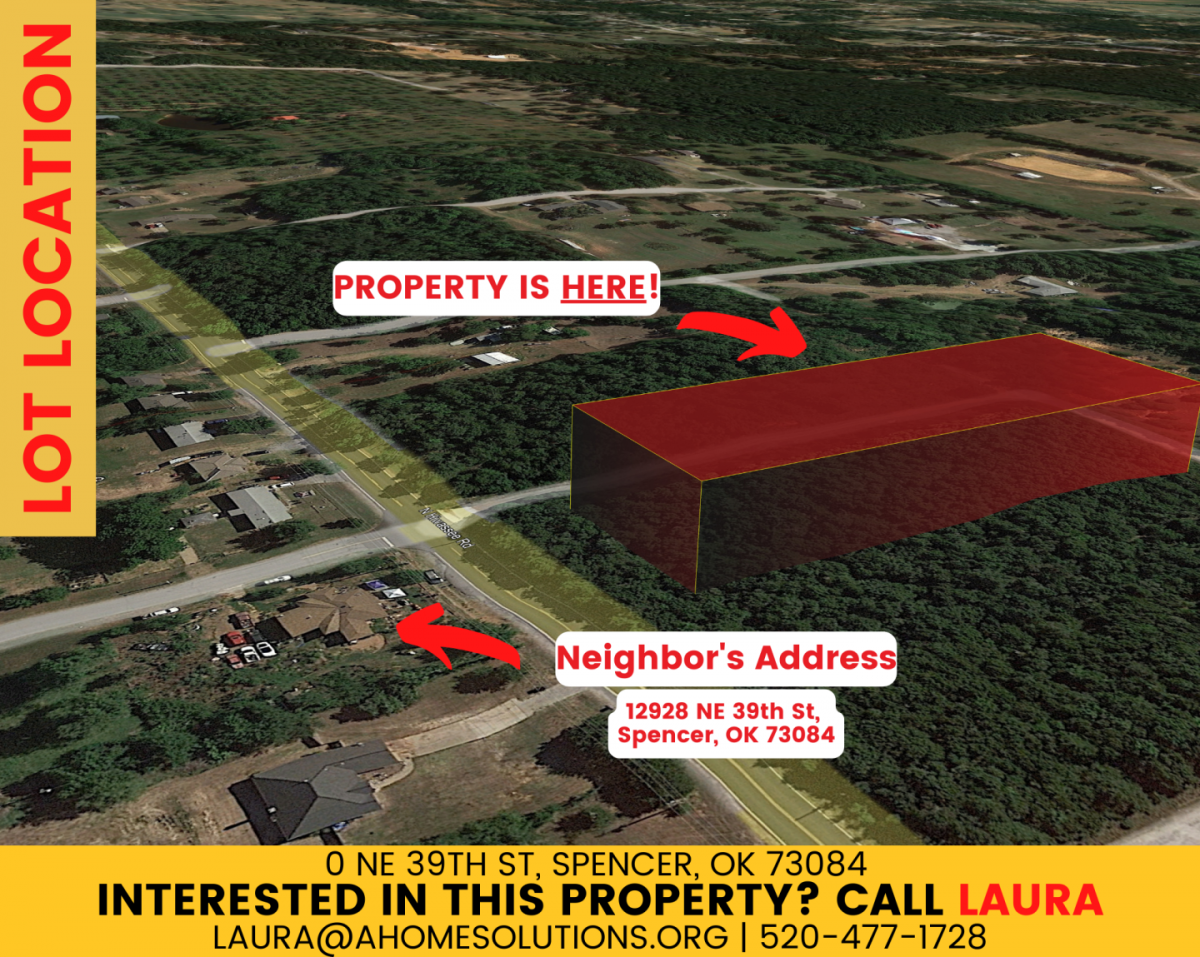 Perfect 1.95ac Build Site in Oklahoma City, Selling at 25% off the Market Value ********************** 1.95ac vacant lot 25% off its market value and other properties sold in the area. Located at NE 39th St., Spencer, OK just less than an hour outside Oklahoma City where you won't need to travel far or get caught in traffic often because it has everything you need: Parks, recreation center, groceries, restaurants, and other amenities are close at hand. This property is zoned Single Family residential which allows single-family homes as well as modular homes with foundation. Water and electricity are available on the street, but a septic system needs to be installed. Remember that we’re offering this incredibly discounted lot at a cash price of $43,500 Seller Financing is available at $5,000 down $640 monthly! **************************** PURCHASE OPTIONS: Cash Price: $43,500 Seller Financing: · Owner Financed Amount: $49,900 · Down Payment: $5,000 · Monthly Payments: $640 **************************** PROPERTY INFORMATION: - Lot Type – Vacant Land - State – OK - County - Oklahoma - Assessor's Parcel Number - 2259-14-508-3400 - Zoning – R1 - Single-Family Residential District - Permitted uses: Single-family residential, Modular (conventional frame on foundation), Tiny Homes (Conventional frame on foundation). - Property Address – 0 NE 39th St, Spencer, OK 73084 - Size - Acre(s) – 1.95 - Road Access – Paved Road - Electricity – at the street - Water – water line on the North side of NE 39th St - Sewer – need to install a septic system **************************** PROPERTY LOCATION: Come see the lot today by taking a drive down the paved NE 39th St. You can use these GPS coordinates to find the property via Google Maps: 35.510972, -97.299667. Our property is right across 12928 NE 39th St and you may use it as a reference point. Google Maps Link: https://goo.gl/maps/RWs8yhU8fPVWDWee6 **************************** NEARBY ATTRACTIONS: - Oklahoma City National Memorial Museum, approximately half an hour away – visit an emotional but powerful museum that stands as a symbol of strength in the wake of unspeakable violence. Visit the Memorial Museum to experience the brutality of the Oklahoma City bombing and the tenderness of the response. - Scissortail Park, approximately half an hour away - Lots to do here! Playgrounds for children, water sprinklers to play in, a small rock wall, gardens, and sometimes there are even food trucks nearby. **************************** GOT QUESTIONS? WE HAVE ANSWERS! - Call/Email Laura @ 520-477-1728, laura@ahomesolutions.org. - We may have other properties at bargain prices available. All you have to do is ask! - Don’t hesitate! Connect with us today while this incredible deal is still Available! **************************** DISCLAIMER: Buyer must verify work with County to know what can can't be done with the land, obtain proper permits if needed confirm the availability of any utilities needed/serviced on the lots. The seller makes no warranties or representations about the land, its condition, or what can be built on the parcel.