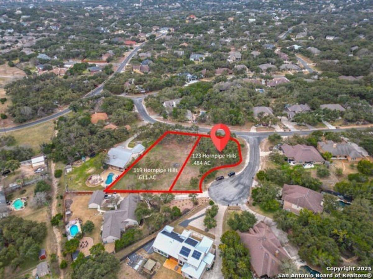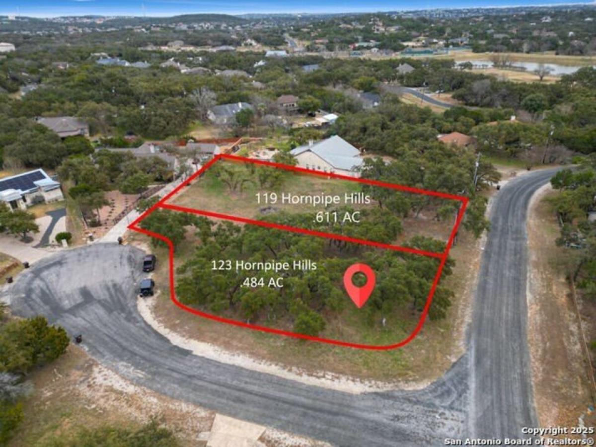 Discover the perfect blend of tranquility and convenience at 123 Hornpipe Hills, San Antonio, TX 78260! Nestled in the sought-after Timberwood Park community, this prime lot offers a rare opportunity to build your dream home in a peaceful, scenic setting. Surrounded by mature trees and a welcoming neighborhood, you#039;ll enjoy a relaxed Hill Country atmosphere while still being just minutes from top-rated schools, shopping, dining, and major highways. Don#039;t miss out on this incredible chance to own a piece of Timberwood Park! Reach out to listing agent for information on the neighboring lot which is also for sale. The two combined are 1+ Acre!