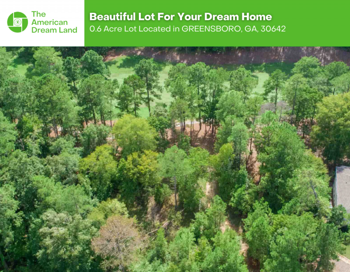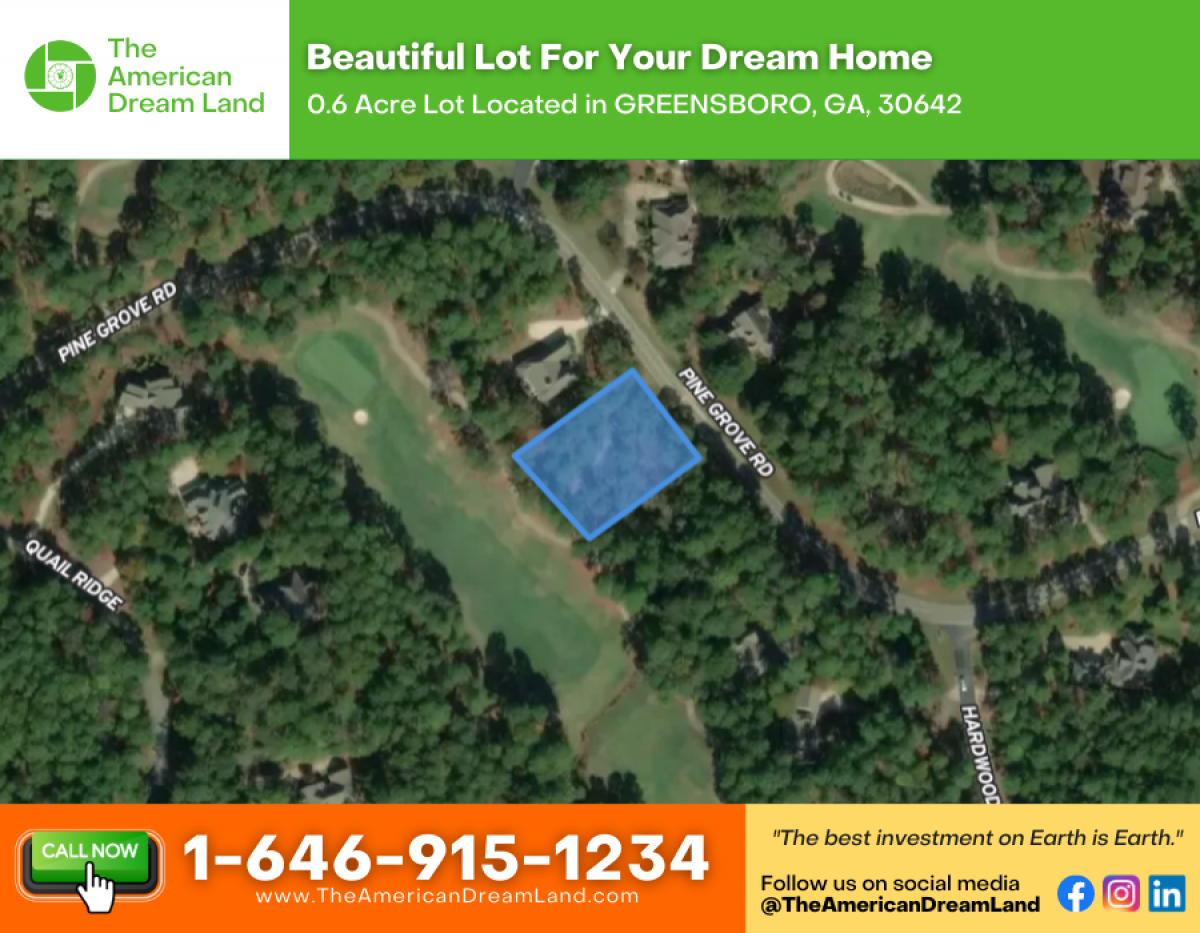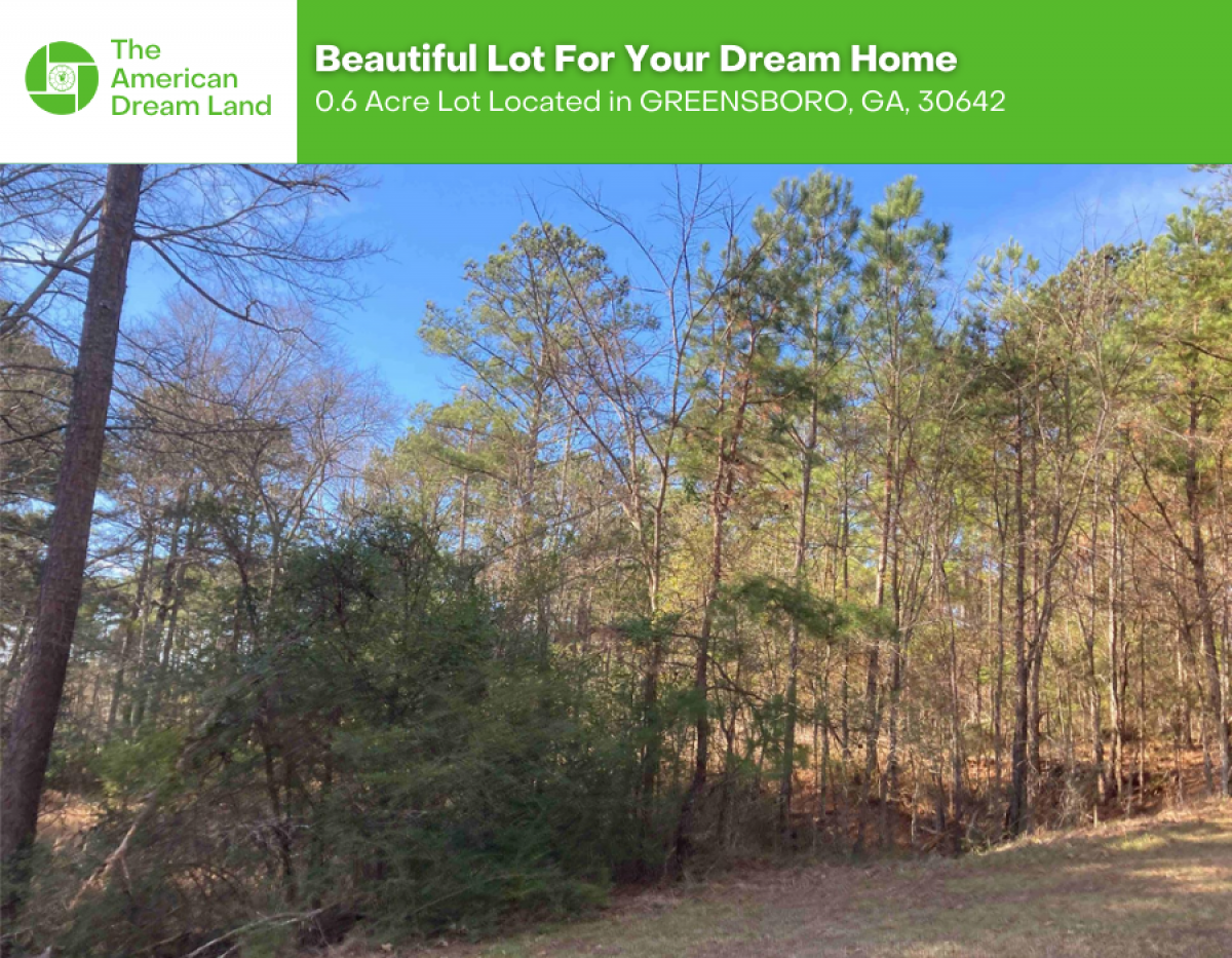 This 0.6-acre lot is located in Greensboro, GA. Perfect for making a long-term investment or building your dream home. Here’s why is this property a good investment? · Below Market Value and Low taxes · Has quiet, natural surroundings · Not in Flood-zone · Utilities nearby · Build your beautiful home in this community. · Access to miles of walking trails and lake Oconee fun. On the 13th hole of a golf course. Property Details: · Property Type: Vacant Land · Parcel #: 058-b-00-031-0 · Parcel Size: 0.6 acres · Property Address: 1290 PINE GROVE RD, GREENSBORO, GA, 30642 · County and State: Greene County, GA · Legal Description: HARDWOOD HOLLOW LT 26 .60 AC · Land Use: Residential · Road Access: Paved Road · Utilities: Possible utilities nearby · Annual Taxes: $222.99 (approx) · GPS Coordinates: 33.429443, -83.226541 · Google Map link : https://goo.gl/maps/yK6NvV4m8prZzfnA7 We provide wholesale discounts on all of our real estate sales! We'll work with you to find the property of your dreams! We also offer flexible financing options. Call us now at 1-646-915-1234 or send an email to sales@americandreamland.com to discuss more! NOTE: Buyer responsible for own due diligence regarding property, it’s use codes, obtaining permits, connecting utilities, and any other future plans the buyer can conceive. Land is sold as-is, where-is with buyer paying all closing costs. Price based on an all-cash purchase.