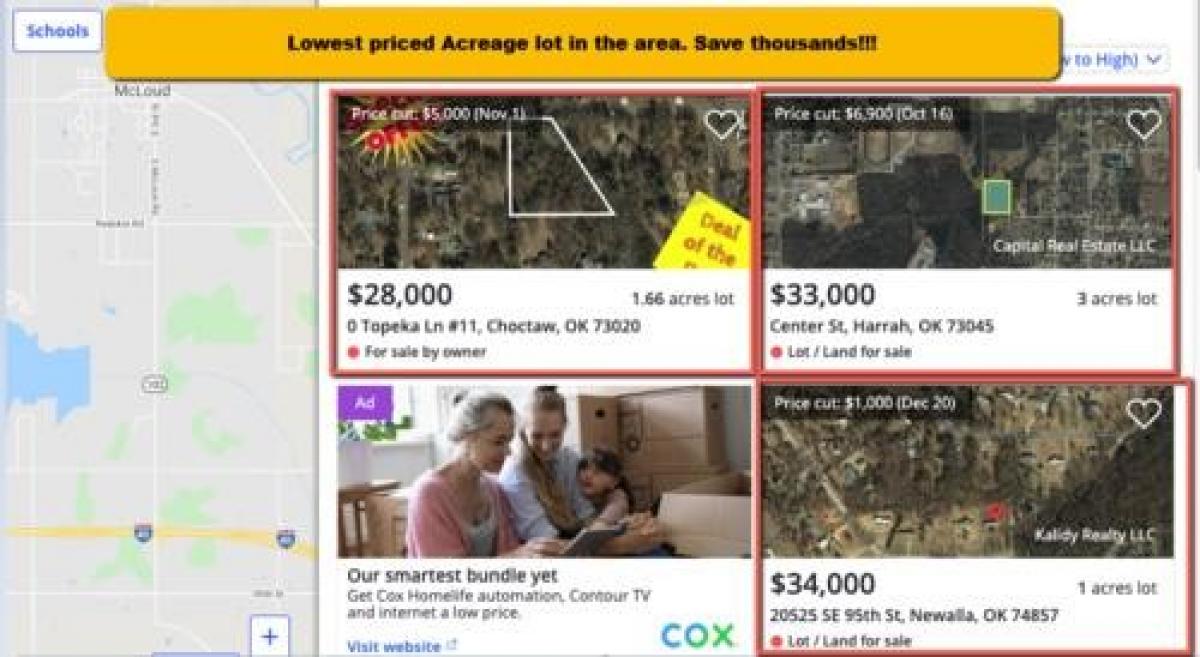 Please Call or txt Dan Caradonna (405) 225-3685 Cash Option $19,888. Owner Finance option price is $25,000 with $2,500 down plus estimated $1000-$1,500 for closing costs. There are 3 payment options you can choose from: $789 x 36 months/ $541 x 60 months/ $361 x 120 months. This lot is sold as is with an old mobile home on it. This lot has had a mobile home on it, so we know it has had well and septic. Similar 2.2 acre lots are Listed in Cleveland County for the minimum $35K. Note: We sell real estate at discount wholesale prices! Settle now on this 2.2 acre property we have for sale in Cleveland County, Oklahoma! This property is located on Armadillo Drive, in an area with few surrounding houses. The town of McLoud is 15 miles North of the property, which is complete with shops, stores, schools, government offices, a public library, and more. Oklahoma City is 28 miles away, a great city to experience fun and adventure in the midwestern setting.. Cleveland County does not just offer great living; it also offers lots of opportunities for adventures like hiking, camping, fishing, and more. The property itself is only 6 miles from Lake Thunderbird State Park and Little River State Park, which are both highly rated parks with quality natural attractions. The lot is located less than 10 miles South of Interstate I-40. To locate the land I put the map coordinates in the pictures of this listing or you can use an app called Landglide and you can input Cleveland County, OK and R0000253. (Coordinates, 35.2852715, -97.167598) Call (405) 225-3685 for questions for the county on this property. This lot is a great deal. Call us now to learn more about the offer! -23 miles from Wal-Mart -21 miles from Lowes -22 miles from Major fast food including McDonalds, Burger King and Chic-Fil-A -Oklahoma City 28 miles away -Grand Casino Hotel and Resort 14 miles away -Fire Lake Casino and Entertainment Center 17 miles away Get this private property with taxes at only $114 a year!! Property Details: If you have specific questions on what can go on the lot, please call the building and zoning department of the city of Cleveland at (918) 358-3506 Interested? Call or txt Dan Caradonna (405) 225-3685 Property Type: Land State: Oklahoma County: Cleveland City: Newalla APN: (Assessor's Parcel Number): R0000253 Property Address: 131 Armadillo Dr, Newalla, OK Zip: 74857 Coordinates: 35.285326, -97.167552 Size: 2.2 acres Short Legal: 2-9-1E 2.23 AC TR 35 CLEAR CREEK EST SURVEY PRT E/2 NW/4 W/2 NE/4 Zoning: No Zoning Road Access: Dirt Electricity: Not connected, but can be by contacting Oklahoma Electric Cooperative (OEC) Annual Taxes: $114 Mobile Homes: Mobile Homes are Permitted RV: RV is allowed, no restrictions Buildability: Can build anything, no restrictions Terrain: Rolling Camping: Camping is allowed Water: Well, can be connected to the main Sewer/Septic: Septic System Flood Zone: Not in Flood Zone This lot is sold as is with an old mobile home on it. Cash Option $19,888. Owner Finance option price is $25,000 with $2,500 down plus estimated $1000-$1,500 for closing costs. There are 3 payment options you can choose from: $789 x 36 months/ $541 x 60 months/ $361 x 120 months. This lot has had a mobile home on it, so we know it has had well and septic. Please Call or txt Dan Caradonna (405) 225-3685