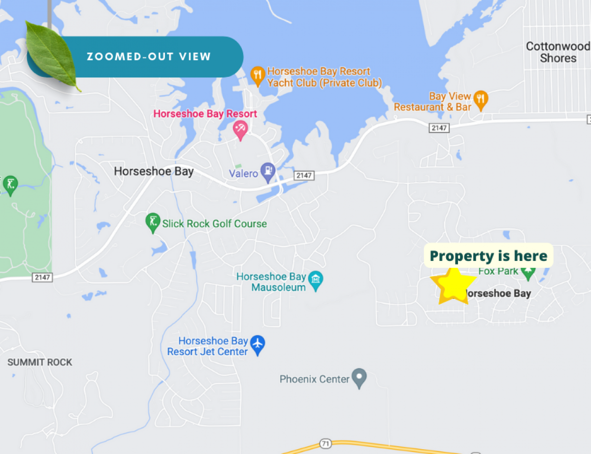 NO CREDIT CREDIT FINANCING AVAILABLE! Build your Dream Home on this gorgeous 0.26-acre lot in Horseshoe Bay, Texas. This property is located in a prime location just 8 minutes southeast of the center of Horseshoe Bay. You are just a short drive to shops, stores, restaurants, lake access and other major establishments in the area. Horseshoe Bay is home to the amazing Horseshoe Bay Resort. "The Knot" named Horseshoe Bay Resort as the BEST wedding venue. The resort hosts several amazing events each year including Birds of the Bay (March 8th and May 15th), Live on the Waterfront (March 8th), Balloons over Horseshoe Bay Resort (April 18-20th), and Cirque-Tacular (March 15th). Horseshoe Bay is just minutes away from a private air field and has year around great weather. What are you waiting for? Call us now to learn more about this offer at 720-650-8966.