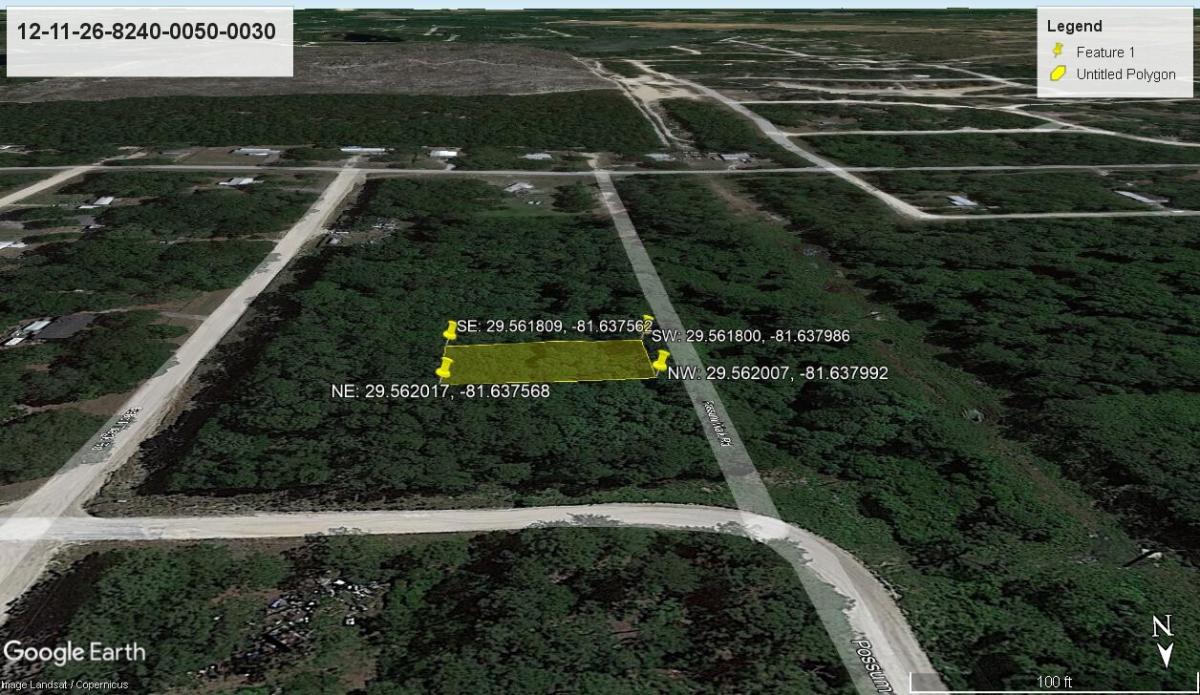 Satsuma is a paradise for all who like to fish. Little Lake George, Lake George, Crescent Lake, as well as the Murphy Creek Conservation area and Dunn Creek State Park are just a few of the local haunts. Head west for the coast at Cedar Key or east for the Atlantic oceanside at St. Augustine or Flagler Beach. If fishing is not your thing, then maybe a visit to Orlando for your theme park fix will do the trick! Have a need for speed? Satsuma is home to the Putnam County Speedway and the infamous Daytona International Speedway is less than an hour away. Take a scenic riverboat tour on the St. Johns River or a day trip to DeLeon Springs to visit Volusia Speedway Park or make your own pancakes at the SugarMill restaurant (housed in a historic replica mill building). While you’re deciding what to build, you can bring your RV for temporary visits (see zoning details for length of time) without needing a temporary use permit as long as the RV is self-contained and it’s being used by the owners or friends and family of the owners (with permission). Plus if you plan to build on the property, the RV temporary use permit is good for 6 months. Remember if you’re looking for more space, 2 more adjoining lots are available for a total of 0.69 acres! SUBDIVISION: ST JOHNS RIVERSIDE ESTATES, HOOT OWL RIDGE STREET ADDRESS: 164 Possum Walk Rd, Satsuma, FL 32189 STATE: FL COUNTY: Putnam County, FL ZIP: 32189 SIZE: 0.23 acres (upto 0.69 acres with 2 additional adjoining lots) LOT DIMENSIONS: 75 feet x 136 feet APN: 12-11-26-8240-0050-0030 LEGAL DESCRIPTION: Lot 3, Block E, HOOT OWL RIDGE SECTION OF ST. JOHNS RIVERSIDE ESTATES, a subdivision according to the plat thereof, recorded in Plat Book 5, Pages 12-A and 12-B, Public Records of Putnam County, Florida. GOOGLE MAPS LINK: https://goo.gl/maps/JBmtDQtmCJHRiPKA9 LAT/LONG COORDINATES: NW: 29.562007, -81.637992 NE: 29.562017, -81.637568 SW: 29.561800, -81.637986 SE: 29.561809, -81.637562 ELEVATION: 39 ft ANNUAL TAXES: Approx. $95 per year ZONING: R-2 - Residential, Mixed - Site built, manufactured and mobile homes are allowed. No time limit to build. Minimum size is 700sqft. Mobile homes require permanent installation and must comply with H.U.D. standards. Tiny Homes are not allowed; however small homes that comply fully with the current Florida Building Code can be constructed in R-2 Zoning Districts. RVs may be used for temporary shelter in the residential zoning districts without need of a temporary use permit under the following conditions: 1. The use is for temporary visits on a non-fee basis by the property owner or by friends and family members of the owner or occupant of the property, with permission of the property owner. 2. The RV is self-contained. 3. The extent of the stay in the RV does not exceed 14 consecutive days or 120 non-consecutive days in a given calendar year. If planning to build on the property, the RV temporary use permit is available and shall have a duration limited to 6 months (once approved), subject to an extension of time up to 6 months if the construction of the principal residence is diligently proceeding. Maximum time allowed is 12 months. The recreational vehicle shall be self-contained or shall be lawfully connected to an outside source of electrical power, potable water, and sewage disposal. Contact Putnam County FL Planning and Zoning Department at (386) 329-0491 for any additional details. FLOOD ZONE: Yes HOA/POA: No IMPROVEMENTS: None ACCESS: Property can be accessed via Possum Walk Rd. WATER: Would be a well, water haul and holding tank or other similar option SEWER: Would be by Septic UTILITIES: There is power nearby. Phone by cellular, satellite TV/Internet/Phone