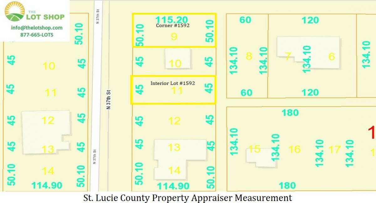 Lot #1592 Lots are adjacent to 1740 N 37th St. Fort Pierce, FL 34947 Investment Opportunity! This double lot package with two deeds has NO HOA, No Time Limit to Build, Low Taxes to Carry, and are just around the corner from Pioneer Park (.3 miles or 6 min walk)! This lot package includes .13-acre, 5,662 sq ft corner lot and a .12-acre 5,227 sq ft interior lot in Fort Pierce . Both are rated as FEMA Zone X – an Area of Minimal Flood Hazard; with access to all public utilities (see links to water and wastewater maps below). Similar single interior lots are going for 30k in this area – take a look at these active neighborhood comps! You’ll love this location near plentiful area attractions, surrounded by the natural beauty of St. Lucie County! This parcel is located less than 6 miles from St. Lucie County’s many beautiful beaches! Fort Pierce is currently one of the most affordable beach towns in the COUNTRY! Secure your lot as properties are moving quickly! Fort Pierce has been the hub of St. Lucie County for more than 100 years and is one of the oldest communities on the East Coast of Florida! It still retains its period Spanish Architecture and charm. Downtown Fort Pierce was named one of the Most Idyllic and Historic Main Streets in America by USA Today in 2015. The historic waterfront area offers shopping, dining, fishing, entertainment, and community activities such as Farmers Market, Car Shows Bike Night, Friday Fest, Jazz Market. There is so much to see and do in Fort Pierce, it really has everything! Visit one of the numerous local breweries or waterfront restaurants after a day on the golf course or beach. Stroll Marina Square Park and take in the views! Take a river cruise, airboat tour, deep-sea fishing trip or sailing adventure with one of the local outfitters. Enjoy the beauty of Heathcote Botanical Garden. Check out the beach at Fort Pierce Inlet State Park where swimming and surfing are popular. If you need a break from the sun have a great dockside dinner, enjoy the local theater, or visit the manatees or National Navy SEAL Museum. Disclosure: Appraiser calculations provide for two lots with two deeds. Corner lot measures approx. 50.10’ x 115.20’ and interior lot measures approx. 45’ x 115.20’. A legal survey would be needed to determine the actual area. Contact the County to check the current zoning information for the specific parcel that you are interested in, as there could be changes to the regulations and/or use permits. To develop your property, you will need to comply with other city codes, such as zoning overlays, sufficient parking, and green space, before requesting building permits. Please contact the City of Fort Pierce for questions on allowable use at 772-467-3000 at or e-mail planning_dl@cityoffortpierce.com. ALL prior year taxes cleared by SELLER Warranty Deed Provided at closing. https://fpua.com/water-service-area-map/ https://fpua.com/wastewater-service-area-map/ Fort Pierce Zoning Regulations Fort Pierce FEMA Map Fort Pierce Utilities Authority St. Lucie County Zoning Contact Info St. Lucie County Land Development Code Link Both lots are zoned RS-4 RESIDENTIAL, SINGLE-FAMILY. TheLotShop.com helps you find Florida lots land fast. Search for land, find a lot you love and close the deal right on your mobile device! Select lots offer our no qualifying, guaranteed finance option to allow you to diversify your real estate portfolio at wholesale prices! Search by Map, County, Features, Uses (Tiny Home, Manufactured Home, Waterfront, etc.) on our Advanced Search Page! Secure your FL land ownership dream today, buying property has never been this easy they aren't making any more land!