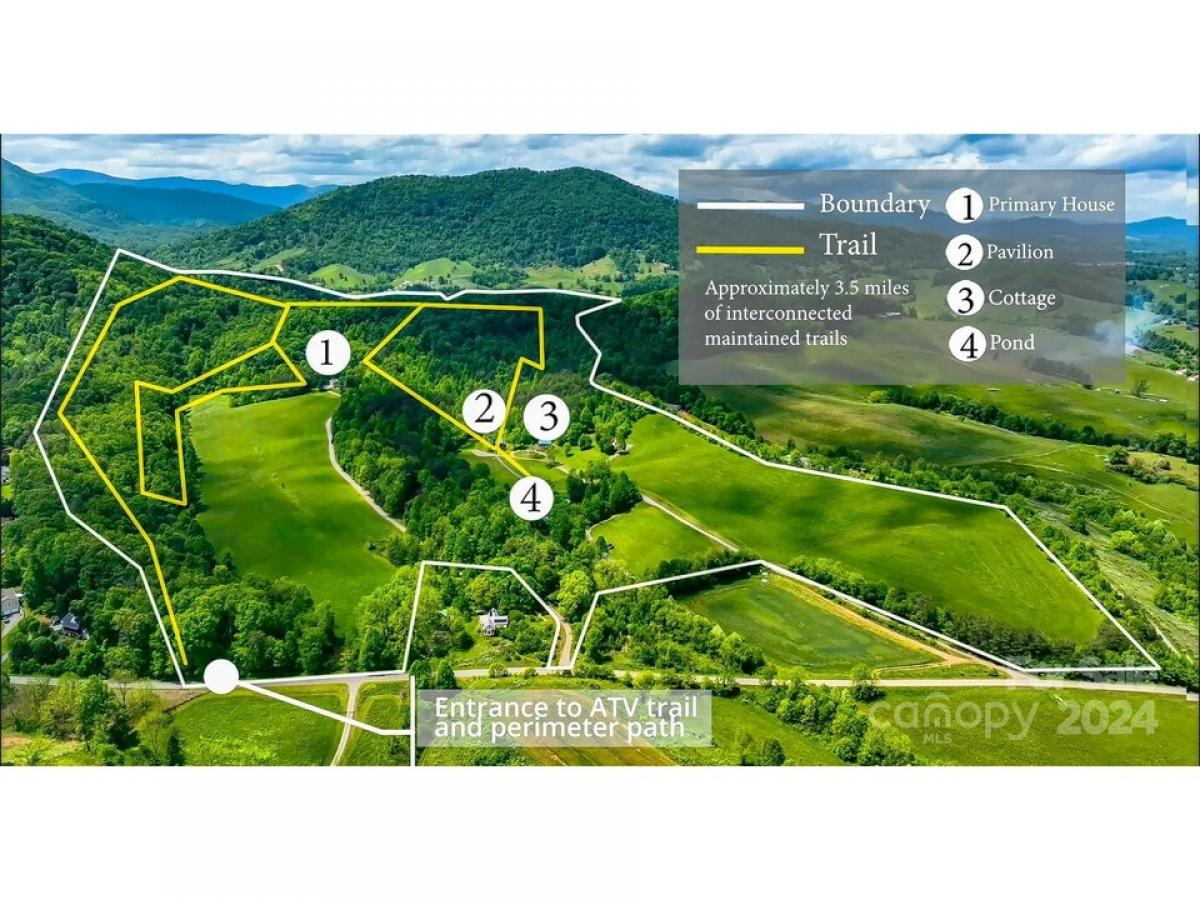 Discover your dream retreat on 102 breathtaking acres, just 20 minutes from downtown Asheville. This stunning property features rolling pastures & panoramic mountain views, creating a serene and picturesque escape. Adjacent to hundreds of acres of conservation land. Main house with pool, guest cottage (used as Airbnb), & Pavilion (used for events). Enhance your outdoor living with a tranquil pond, ideal for fishing or simply enjoying the peaceful ambiance set against the backdrop of natural beauty or wander through rolling pastures or maintained scenic walking/ATV trails. Whether you envision a private sanctuary, a family compound, equestrian estate, development opportunity, retreat center, farm for livestock or a unique event venue, this versatile estate offers endless possibilities. Embrace the best of both worlds with rural tranquility & easy access to Asheville’s vibrant culture, dining, and entertainment. Don’t miss the opportunity to own this extraordinary piece of paradise!